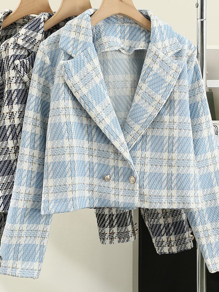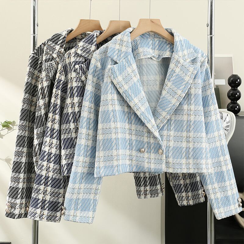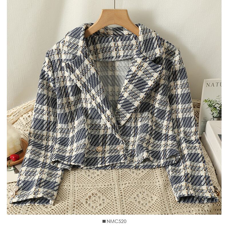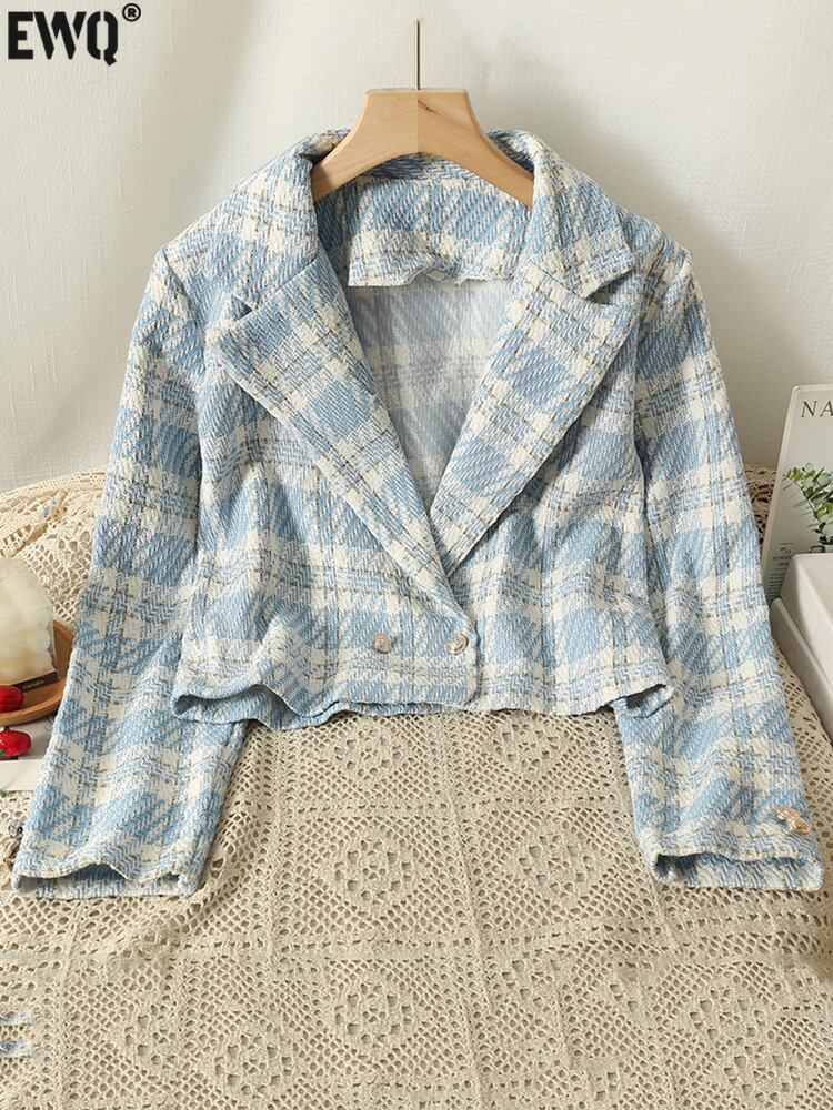 [EWQ] 甘い気質チェック柄ジャケット長袖コントラストジャケットコート秋潮服 ロング 大人ガーリー スウィート キュート カジュアル オータム 秋物