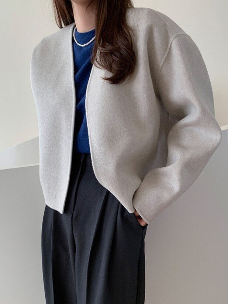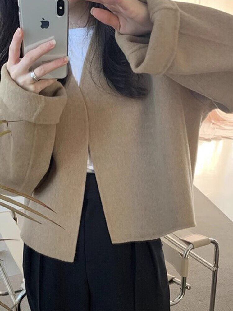 [EWQ] 長袖ウールカーディガンジャケットルーズ秋冬薄手ウールコート潮生き抜く服 ロング オータム 秋物 ウィンター 冬物