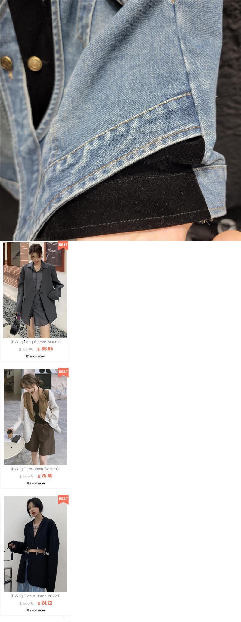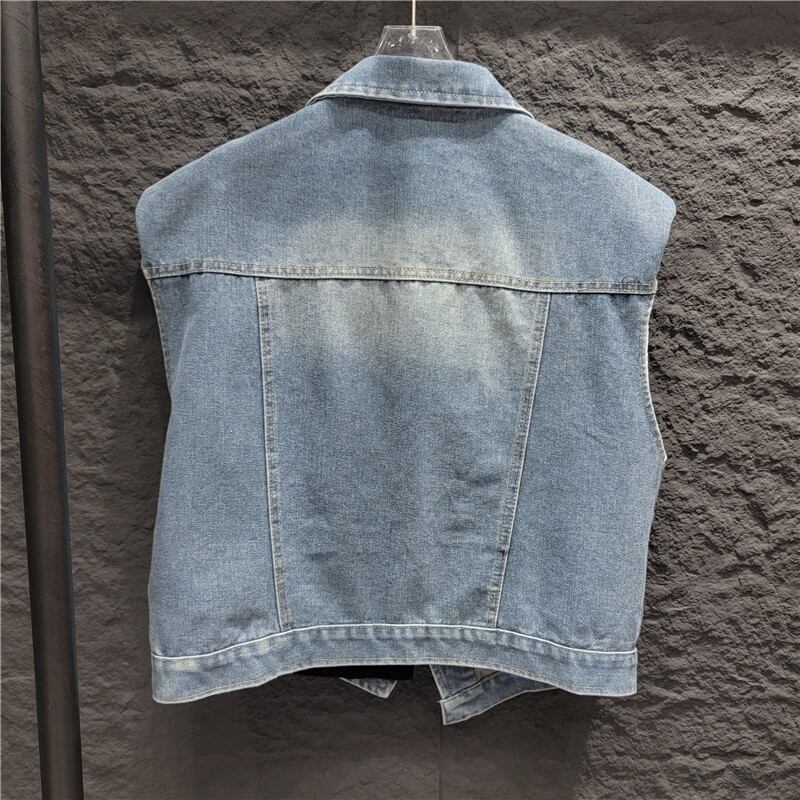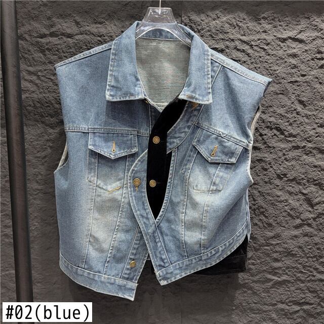[EWQ] 非対称パッチワークデニムベストルーズコントラストボタンポケット装飾ノースリーブジャケット秋潮トップ オータム 秋物