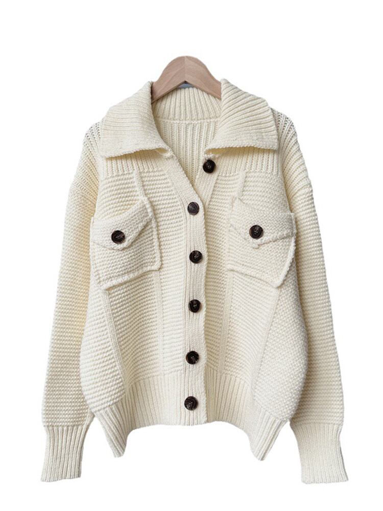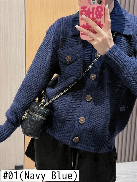 [EWQ] ルーズシングルブレストカーディガンコート長袖ボタン装飾ポケットパッチワークセータージャケット秋 14 ロング オータム 秋物