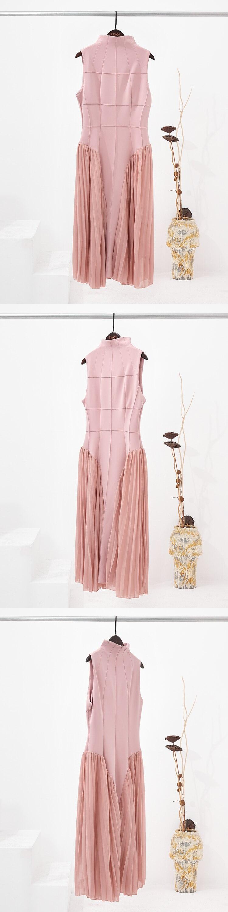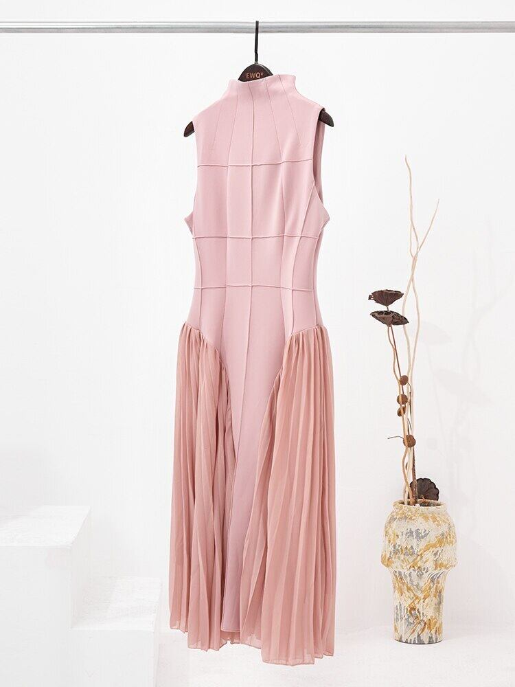 [EWQ] コントラストカラープリーツスプライシングドレスノースリーブピンクドレスサマータイド Vestido 999 夏物