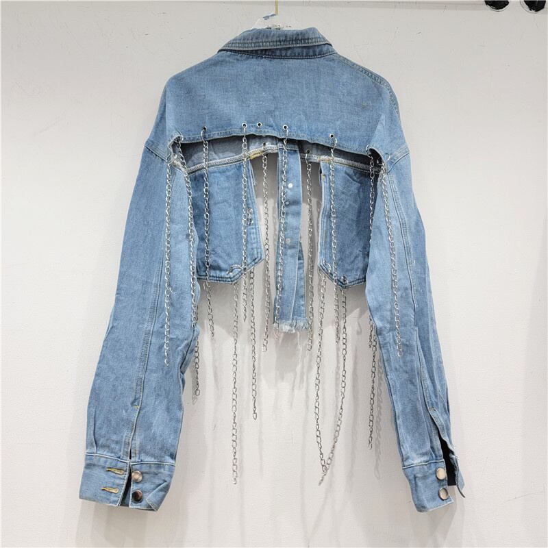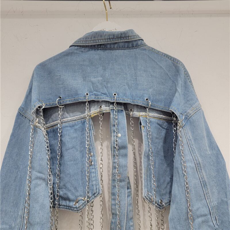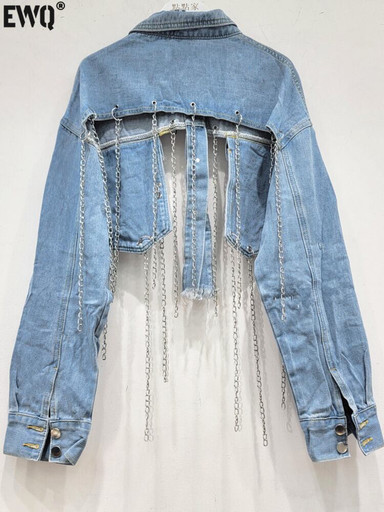[EWQ] テルチェーンデニムジャケットルーズストリートスリーブショールショートジャケットコート秋潮セクシー生き抜く 6U3327 オータム 秋物