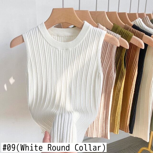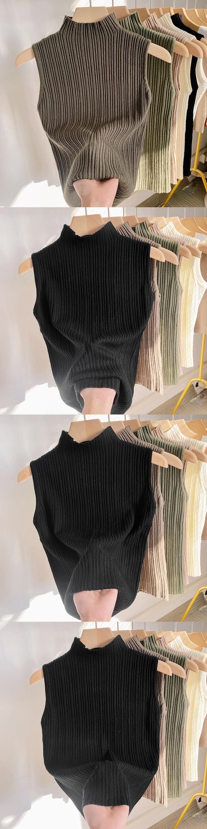 [EWQ] 半襟プリーツニットベストスリム弾性ノースリーブセータータンクトップ夏潮トップ エラスティック 伸縮 サマー 夏物