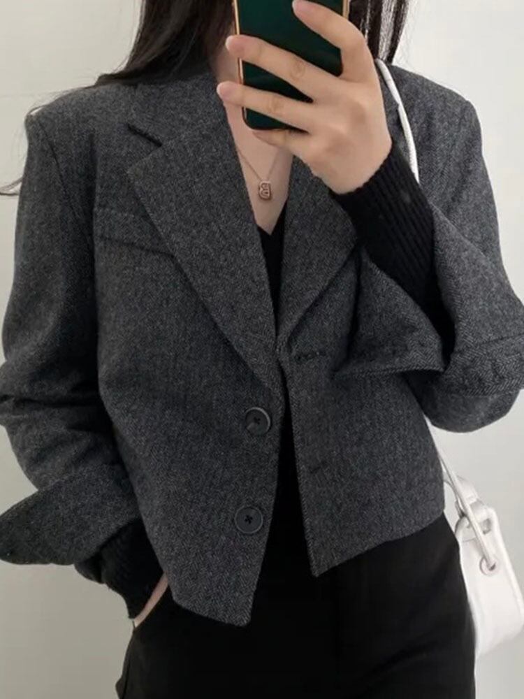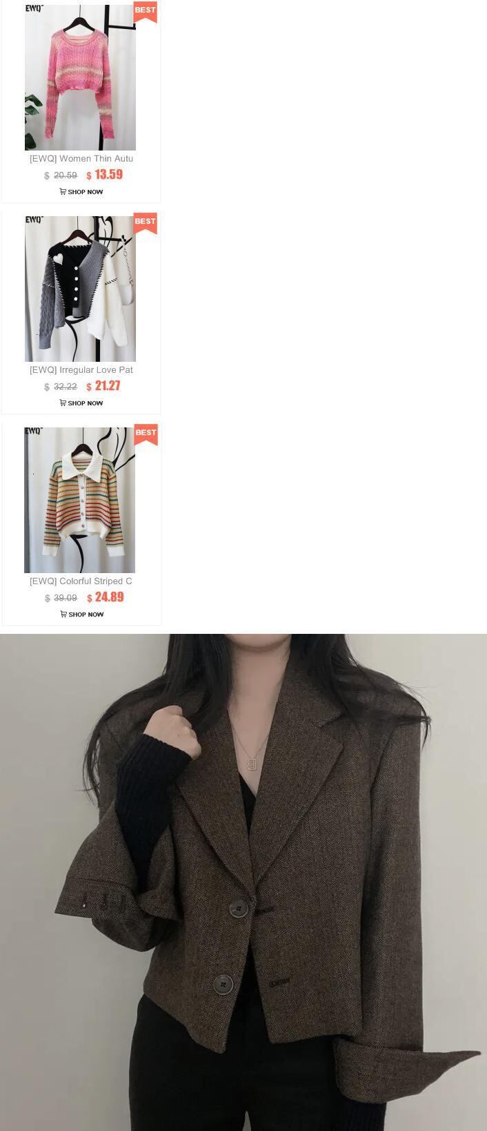 [EWQ] オフィスレディノッチ襟シングルブレストルーズブレザージャケット秋レトロ長袖スーツコート ロング オータム 秋物 会社 学校 通勤や通学にも