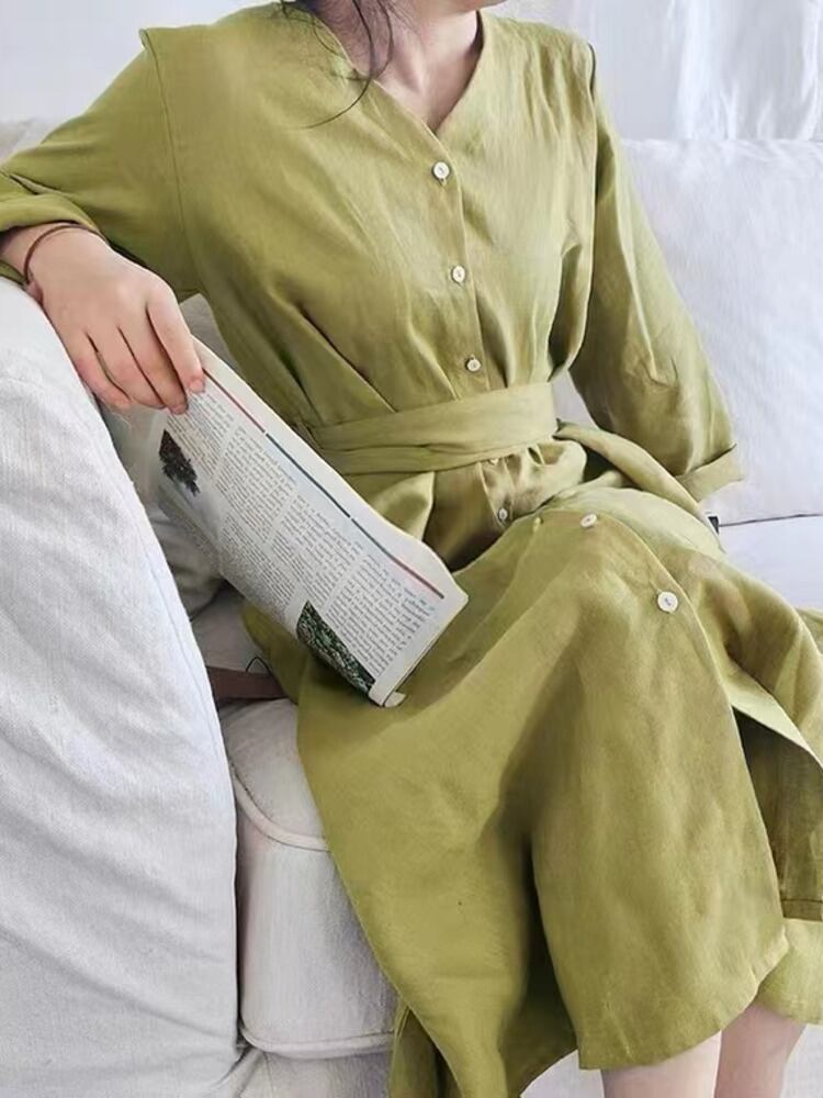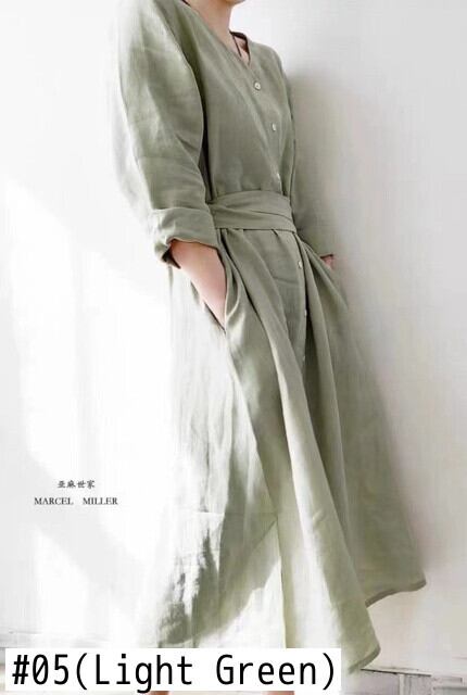[EWQ] コットン長袖ドレスルーズポケット装飾シングルブレストドレス秋薄い Vestido U2431 ロング オータム 秋物