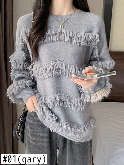 [EWQ] 長袖テルバーズセータールーズ O ネックプルオーバーニット秋潮ニットトップス ロング オータム 秋物 Oネック