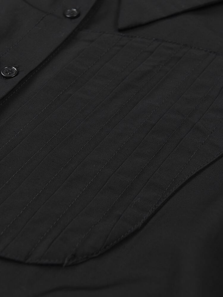 [EWQ] ストリートスタイル黒不規則プリーツブラウスビッグサイズ長袖ルーズフィットシャツ秋春 ロング ブラック スプリング 春物 オータム 秋物
