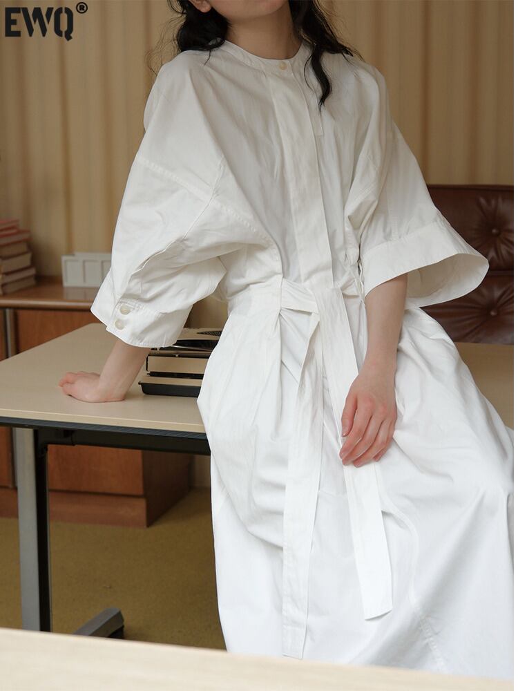 [EWQ] レースアップ ギャザー ウエスト ドレス レディース O ネック 半袖 カーディガン ドレス 秋 アーミー グリーン シャツドレス O028 ショート レッド ハーフスリーブ オータム 秋物 Oネック