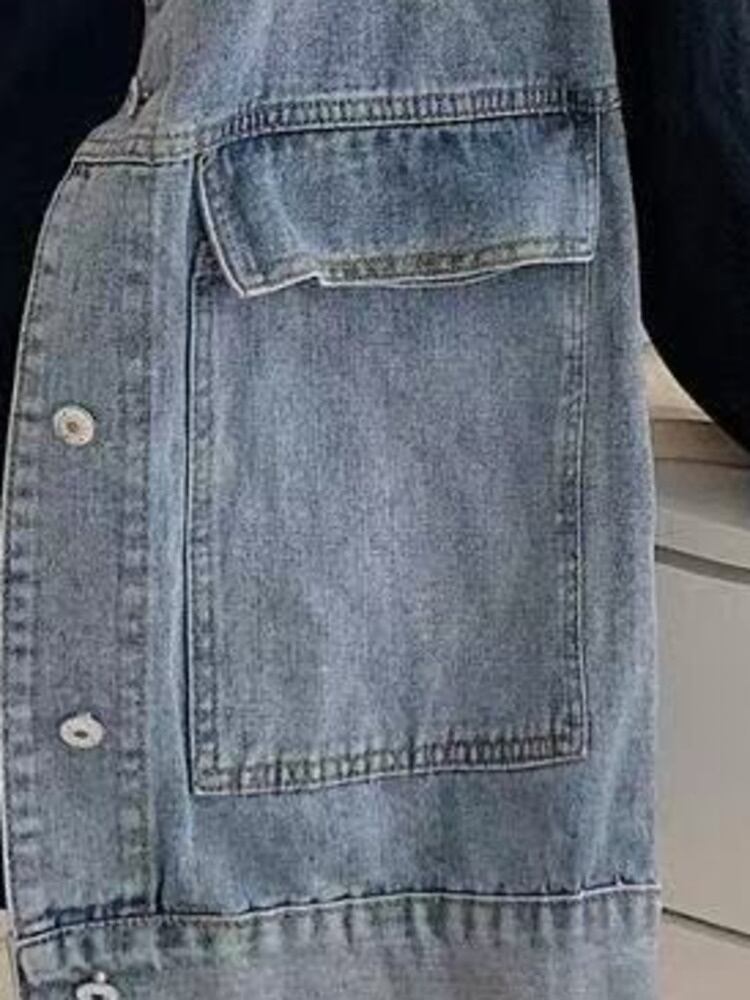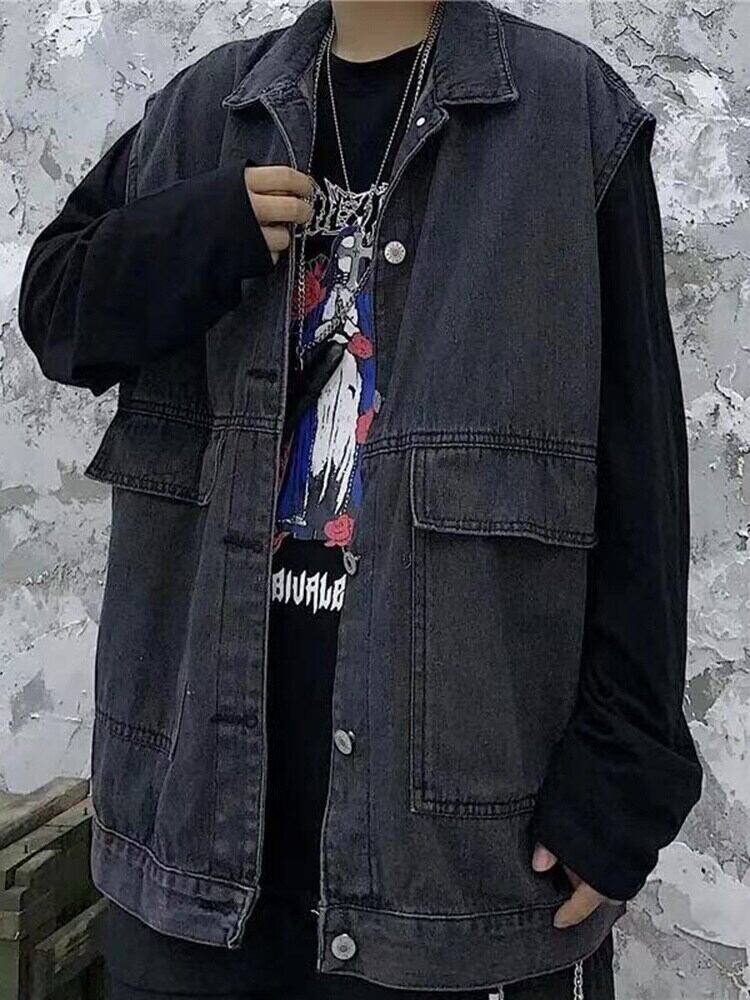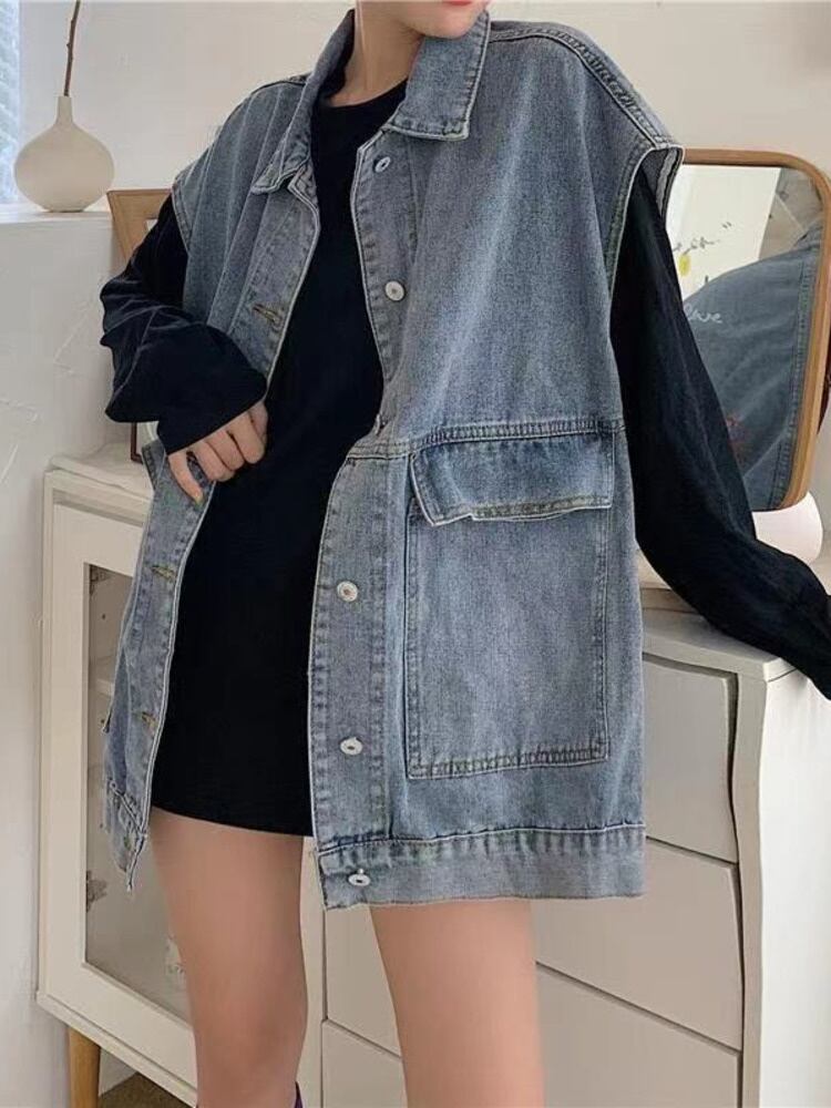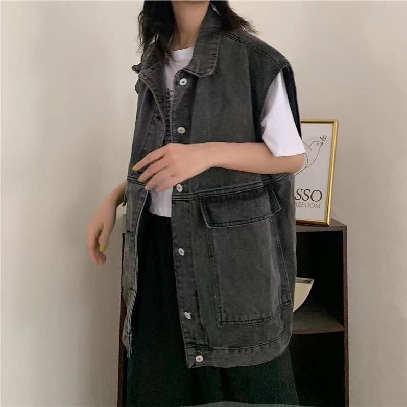 [EWQ] ラペルビッグポケットノースリーブデニムジャケットストリート秋コート夏ベスト潮アウタートップ 16O70 サマー 夏物 オータム 秋物
