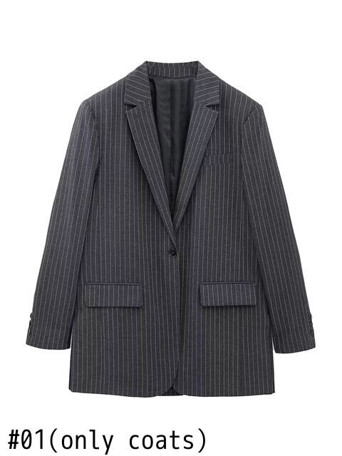 [EWQ] フロントボタンジャケット長袖ルーズコートウエストパンツタンクトップベストオフィスレディースストライプセット ロング 会社 学校 通勤や通学にも