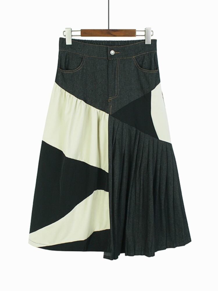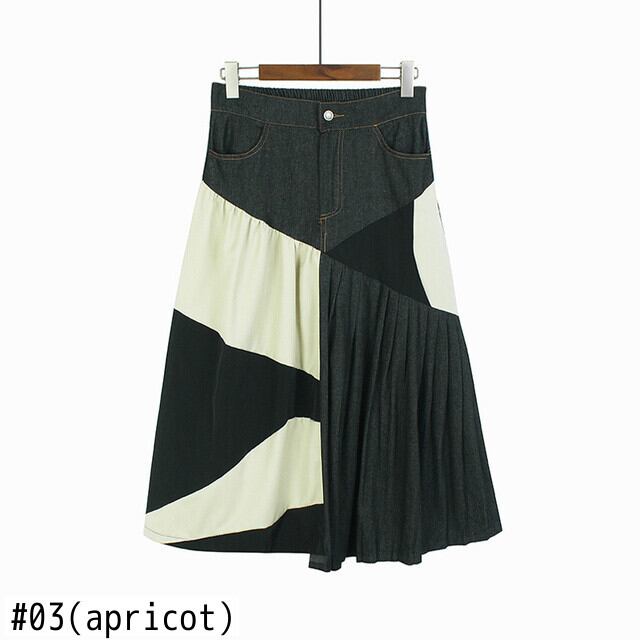[EWQ] レディース デニム スプライス コントラスト スカート 秋潮ウエスト プリーツ パッチワーク A ライン スカート 16U3405 オータム 秋物 Aライン