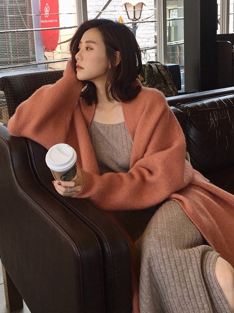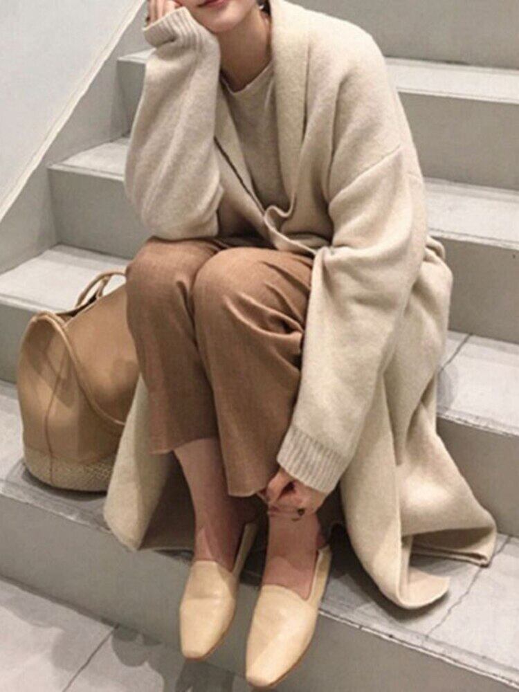 [EWQ] ミニマリストルーズカーディガンコート長袖オープンステッチセータージャケット秋冬潮生き抜く服 ロング オータム 秋物 ウィンター 冬物