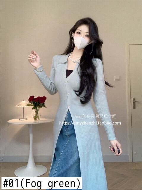 [EWQ] 長さカーディガンコート秋薄い長袖シングルブレストスリム弾性セータージャケット潮 ロング エラスティック 伸縮 オータム 秋物