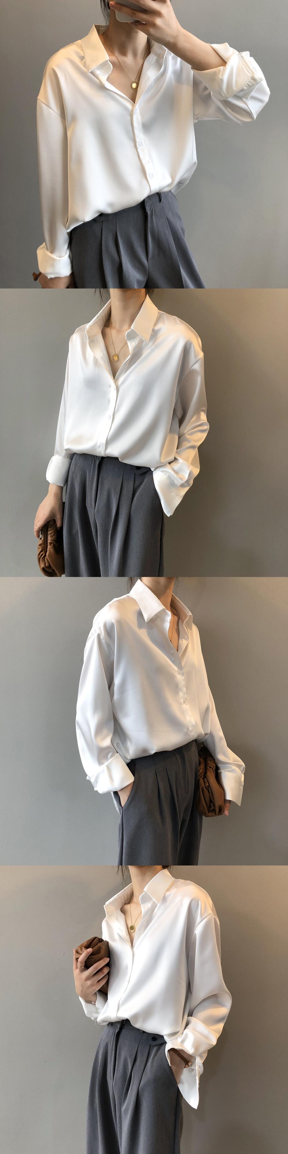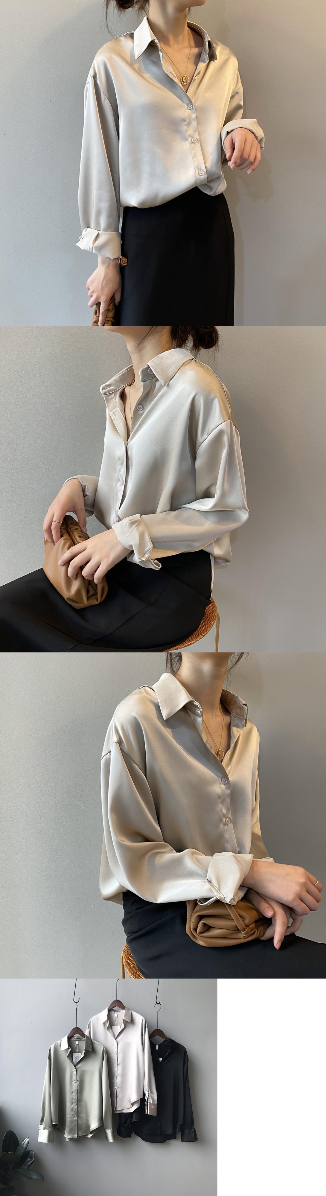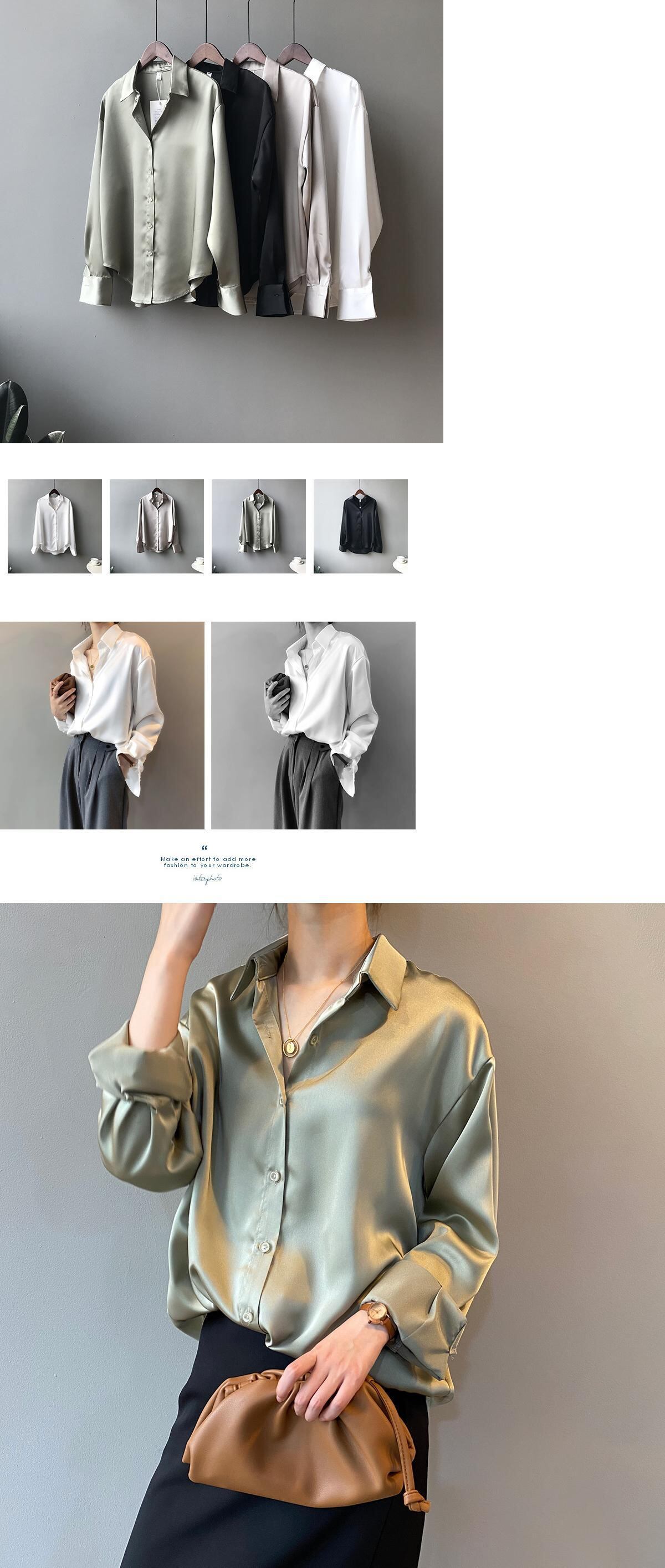 [EWQ] 秋ルーズポプリンシャツ Temperamen ブラウスシャツソリッドカラーオーバーサイズトップブラウス 16Q514 オータム 秋物