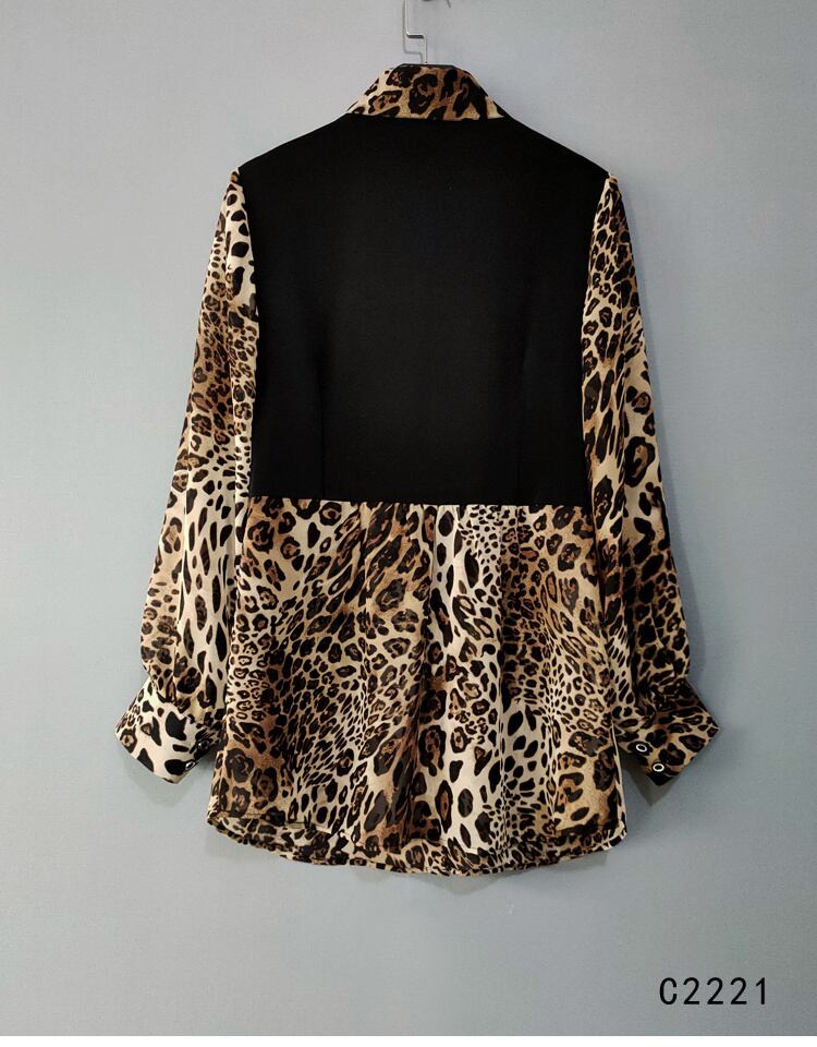 [EWQ] ヒョウ柄フェイクツーパッチワークシャツラペル長袖ゆったりシフォントップス秋16O391K ロング オータム 秋物
