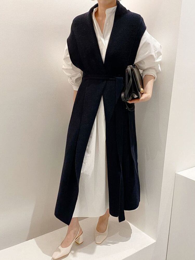 [EWQ] V ネック包帯セーターベストルーズ丈ノースリーブニットタンク秋潮服 オータム 秋物 Vネック