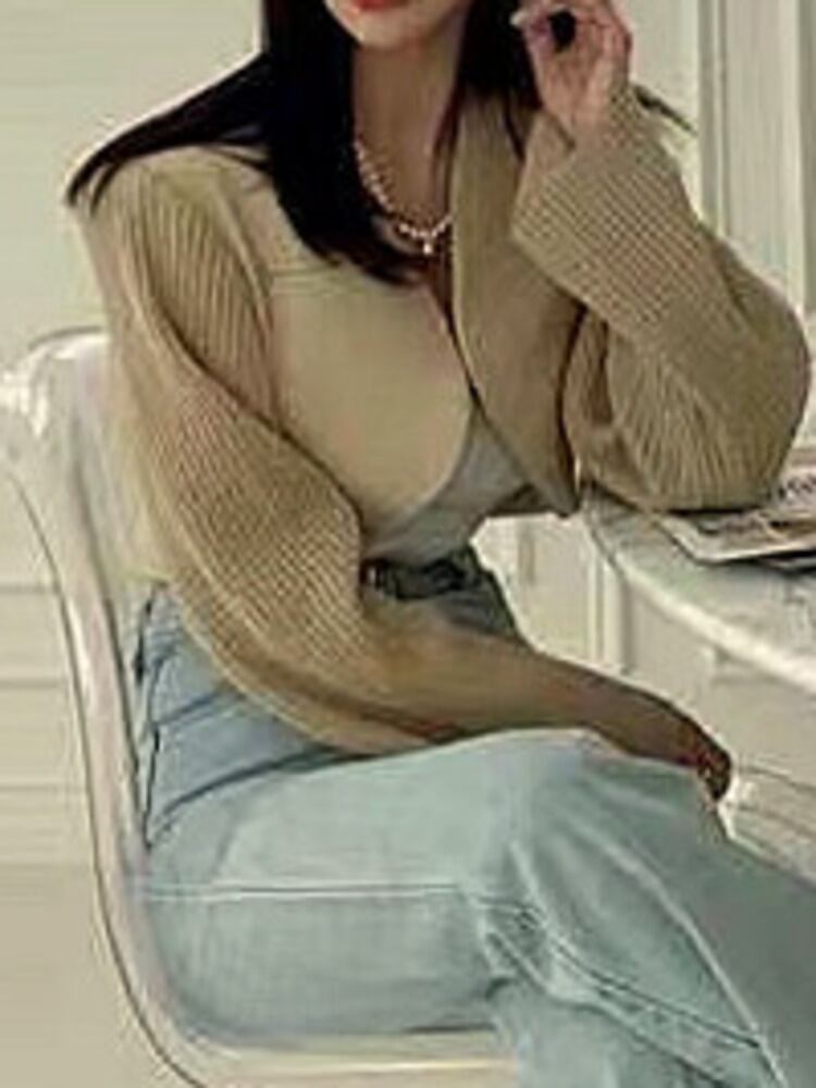 [EWQ] 長袖ニットパッチワークジャケットルーズオープンステッチショートジャケットコート秋潮生き抜く 16U3257 ロング オータム 秋物
