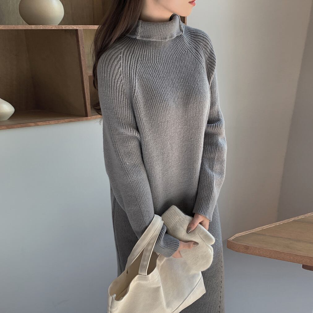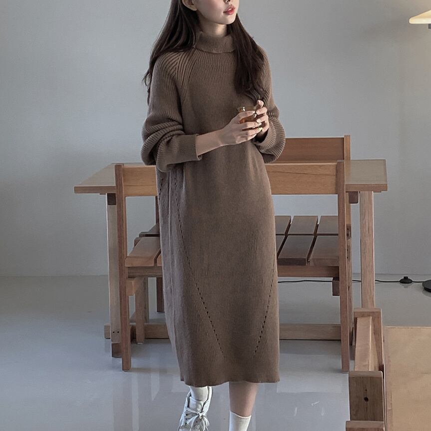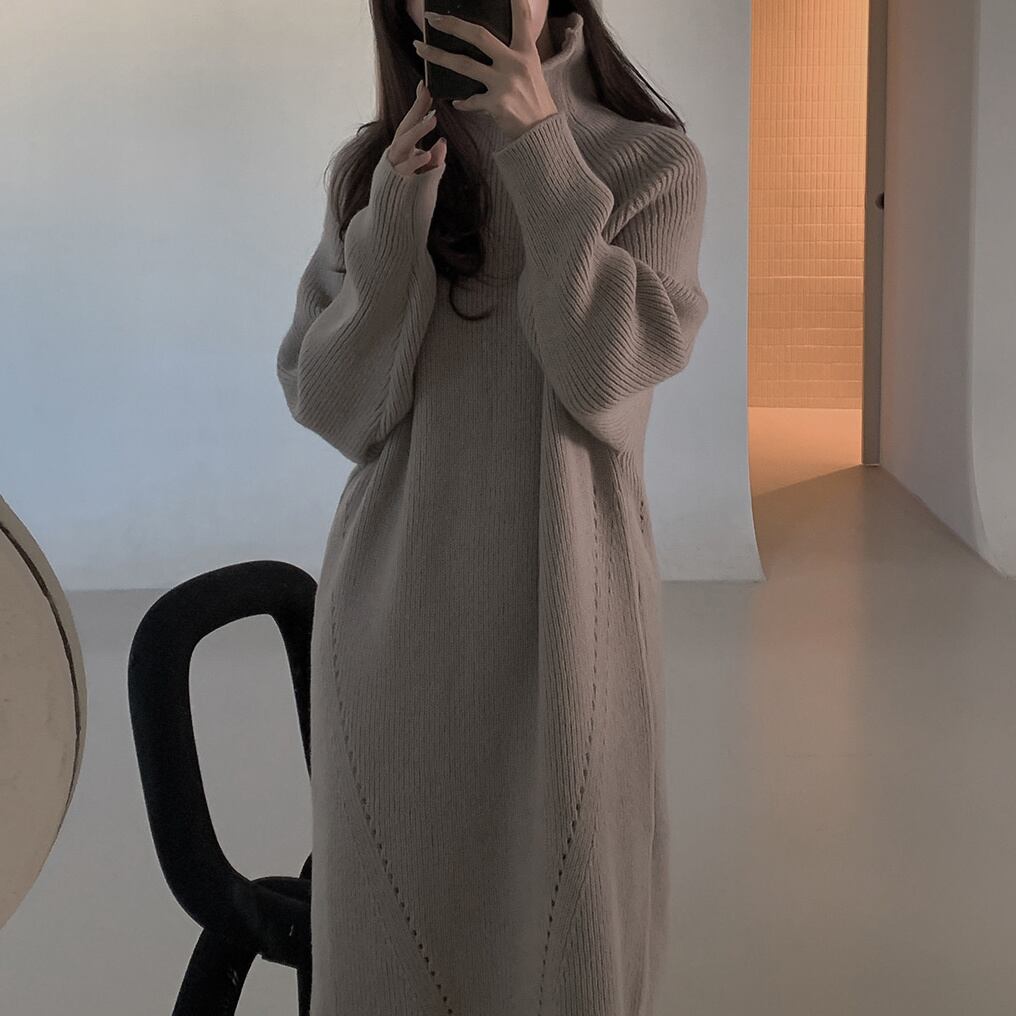 [EWQ] ルーズニットドレス秋長袖タートルネックセータードレス潮ニット Vestido 16U2509 ロング オータム 秋物
