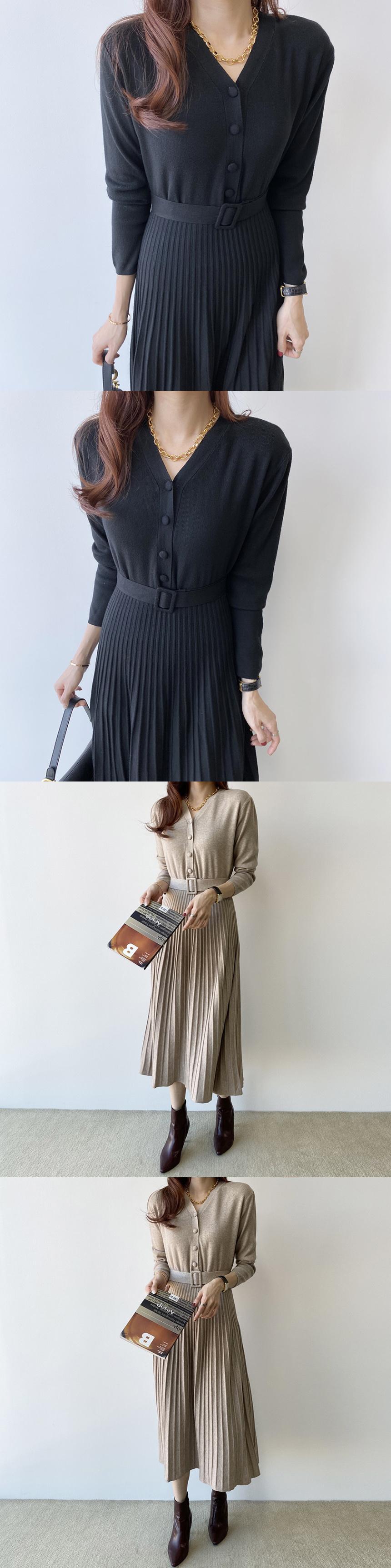 [EWQ] V ネックプリーツパッチワークドレス長袖ボタンレースアップドレス秋潮 Vestido U3320 ロング オータム 秋物 Vネック