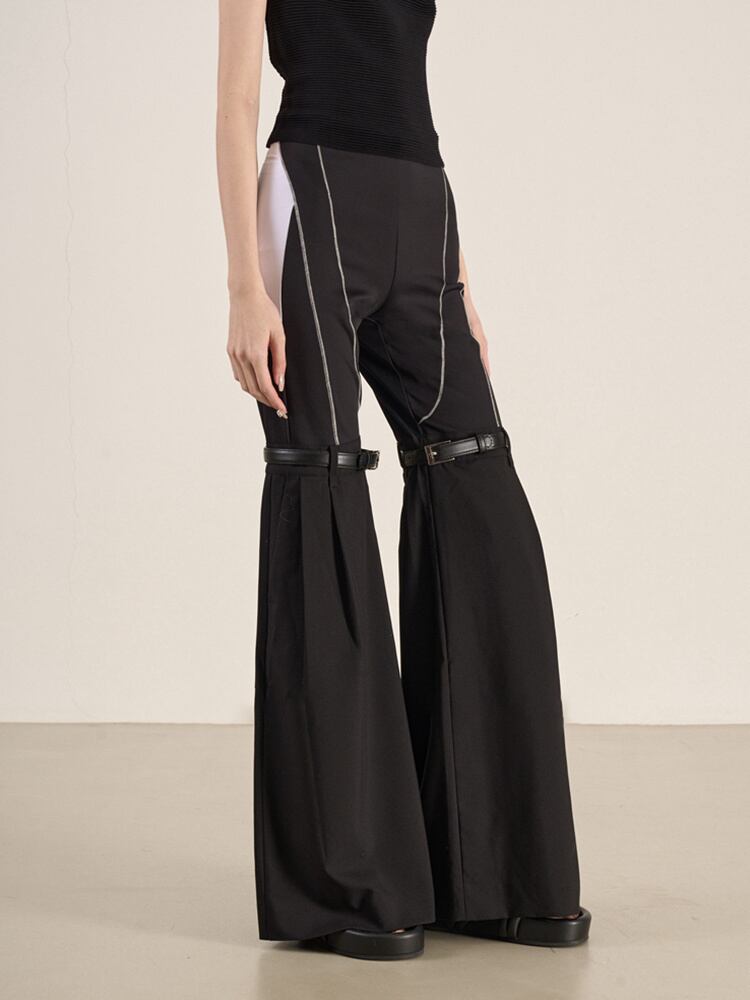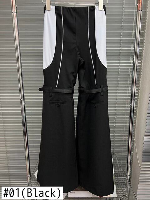 [EWQ] 秋パッチワークヒットカラーフレアパンツウエストゆったり全身ズボン黒潮 19J4152 ブラック オータム 秋物
