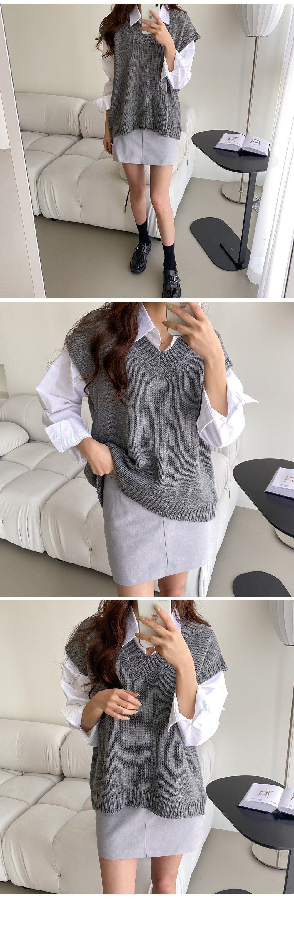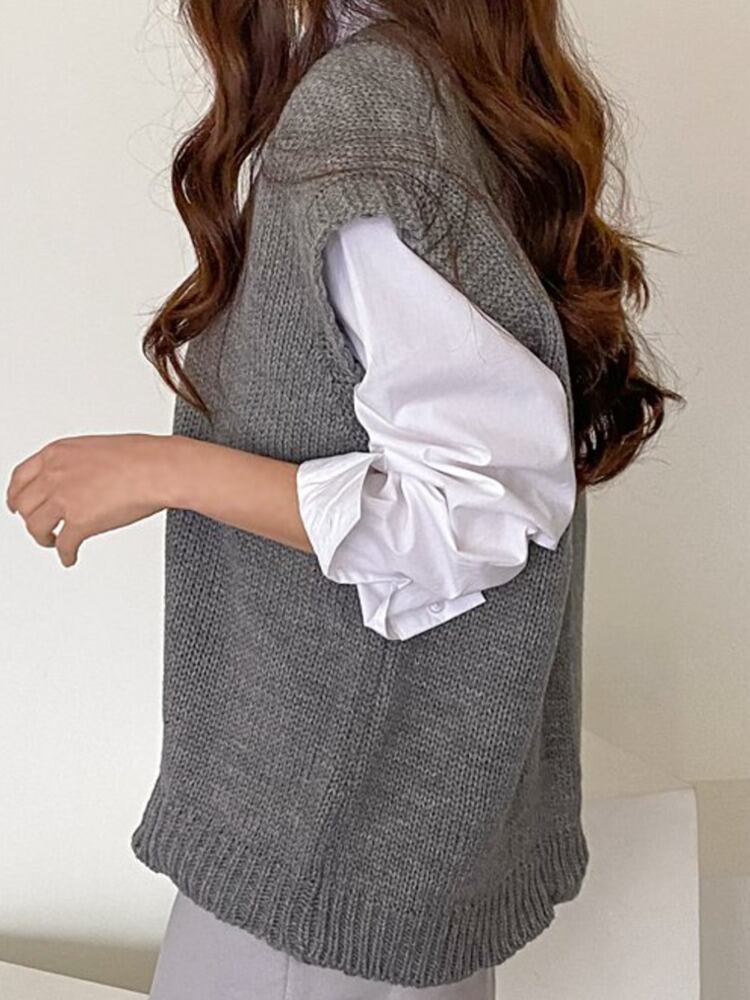 [EWQ] 秋プルオーバーセーターベスト V ネックルーズニットノースリーブタンク潮オールマッチ服 オータム 秋物 Vネック