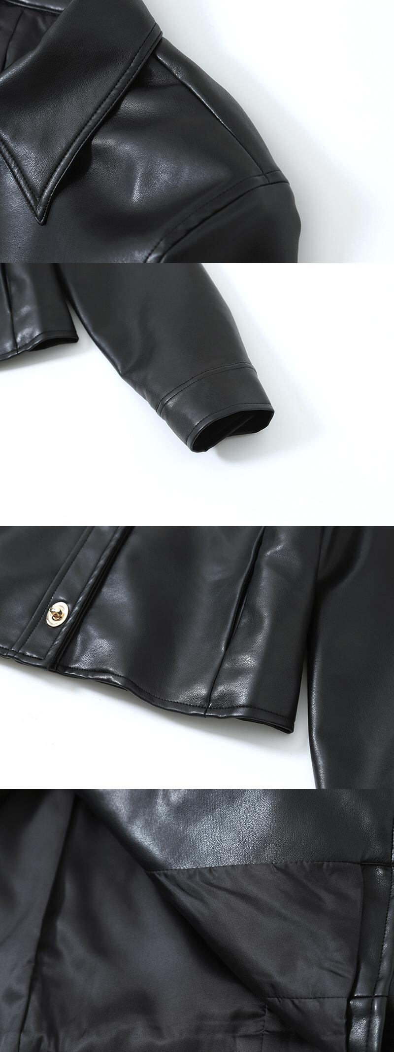 [EWQ] ストリート ブラック PU レザー コート レディース ラペル シングルブレスト スリム ジャケット アウター 秋潮 オータム 秋物