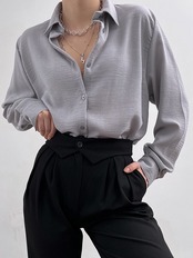 [EWQ] グリーン ルーズ シャツ レディース 長袖 シングルブレスト 秋潮ブラウス ソリッド カラー トップ ロング オータム 秋物 ソリッドカラー