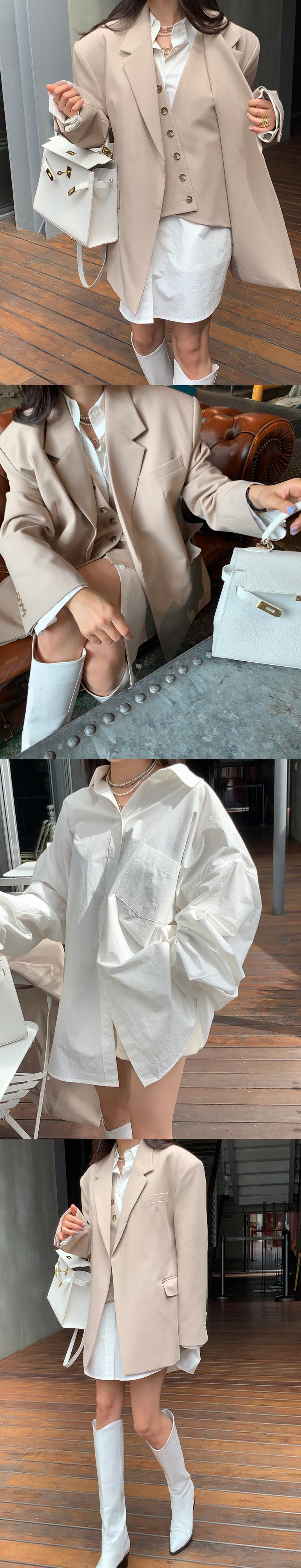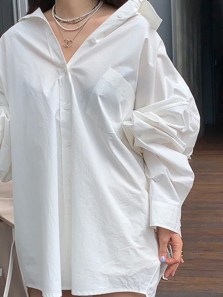 [EWQ] レディース ミニマリスト シャツ 長袖 シングルブレスト 大きいサイズ 秋潮 ホワイト ベーシック トップス 322 ロング オータム 秋物