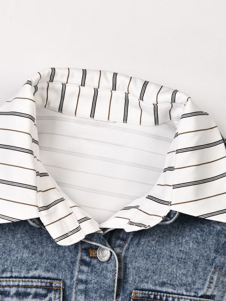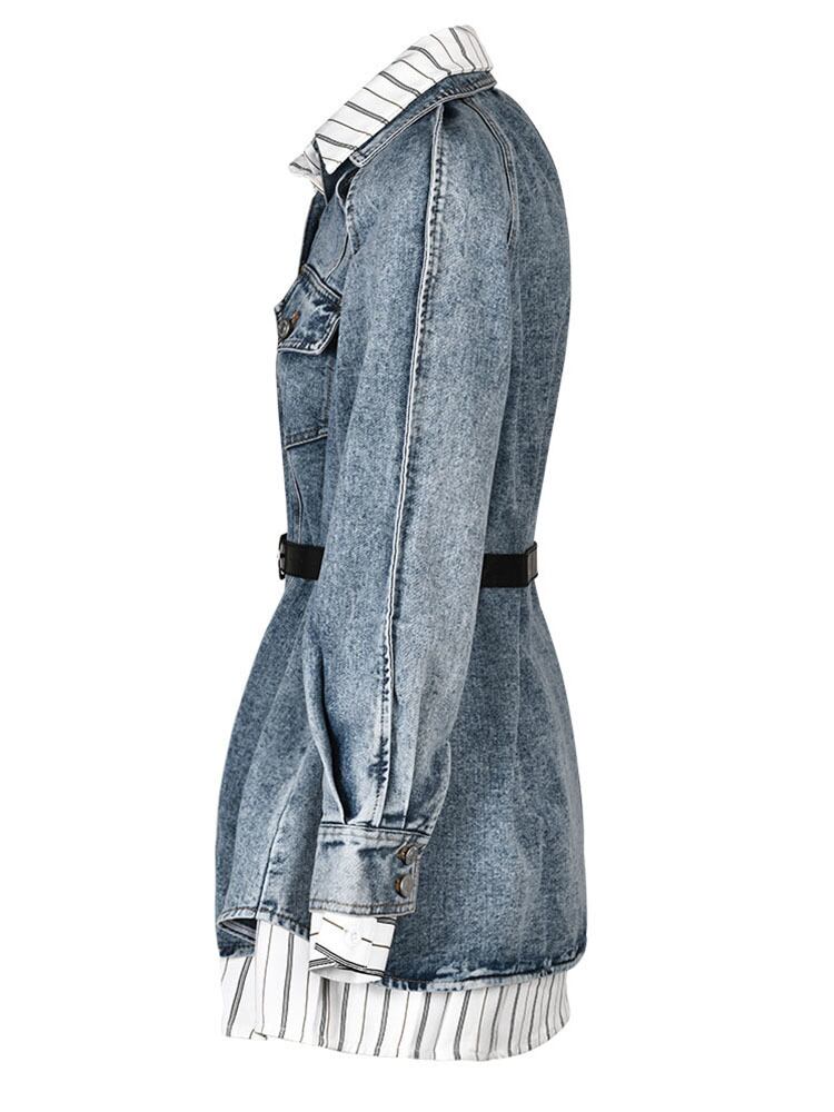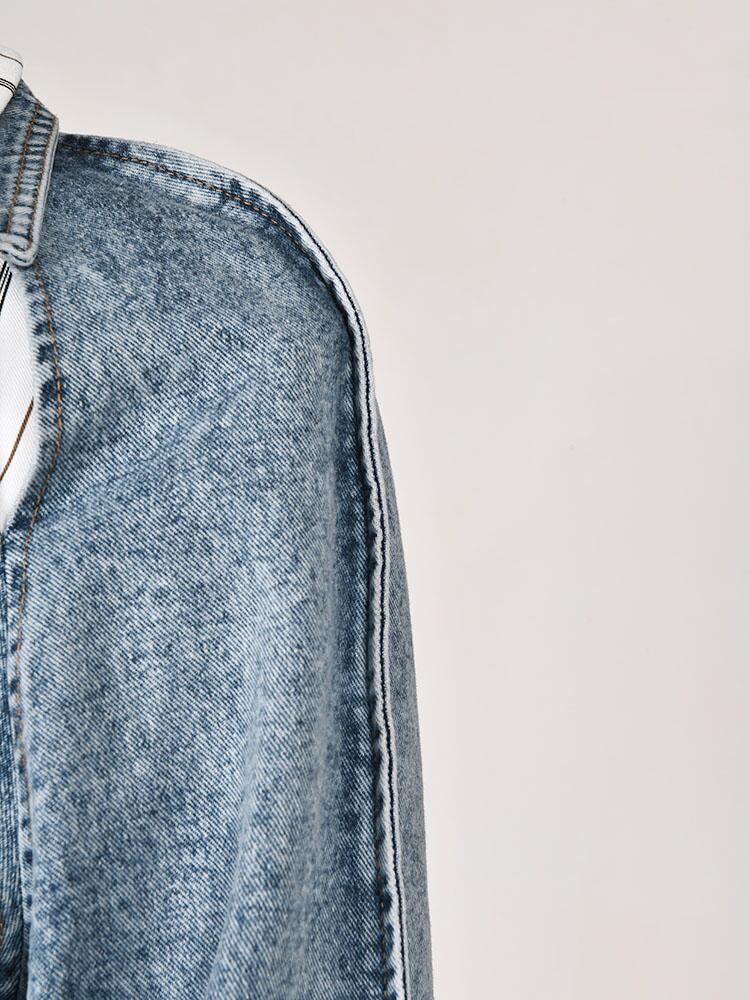 [EWQ] ブルーストライプデニムビッグサイズジャケット長袖ルーズフィットコート潮秋美しい ロング オータム 秋物