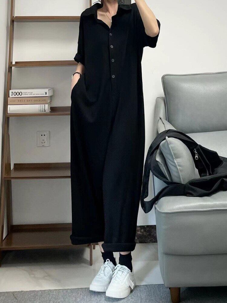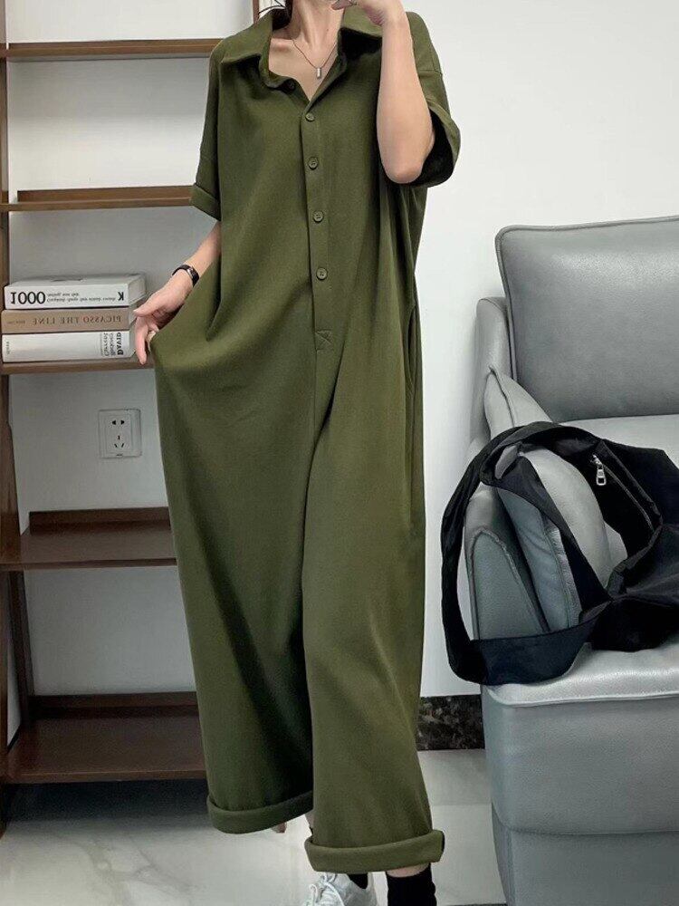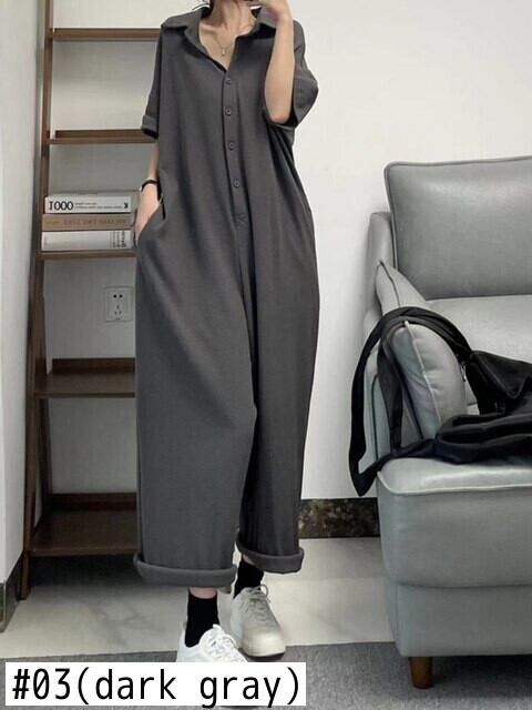 [EWQ] ラペルボタン装飾ジャンプスーツ半袖ソリッドカラーポケットサマージャンプスーツ 16U620 ショート ハーフスリーブ 夏物