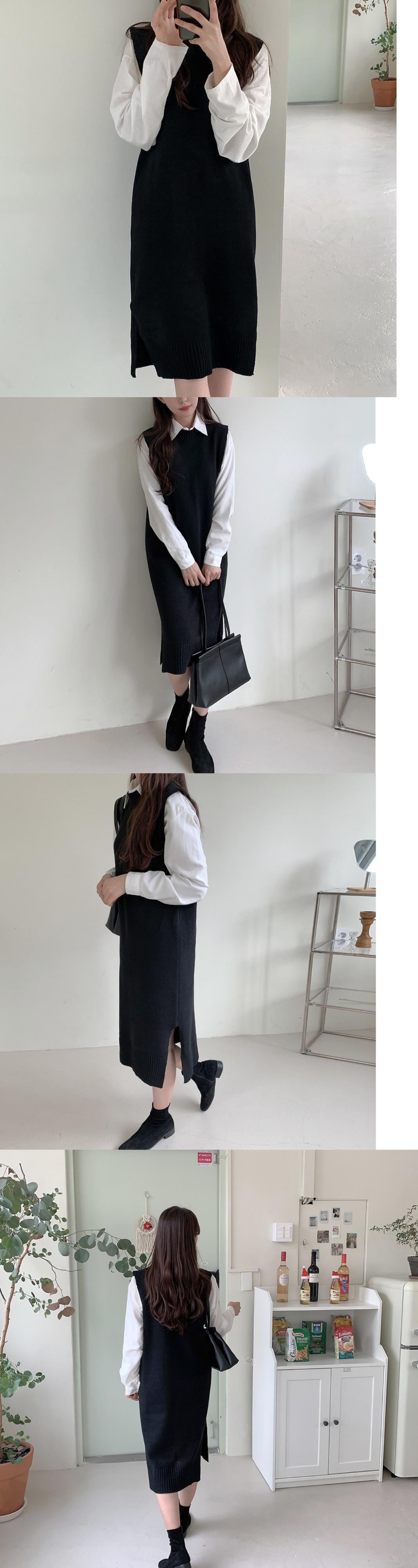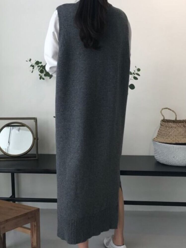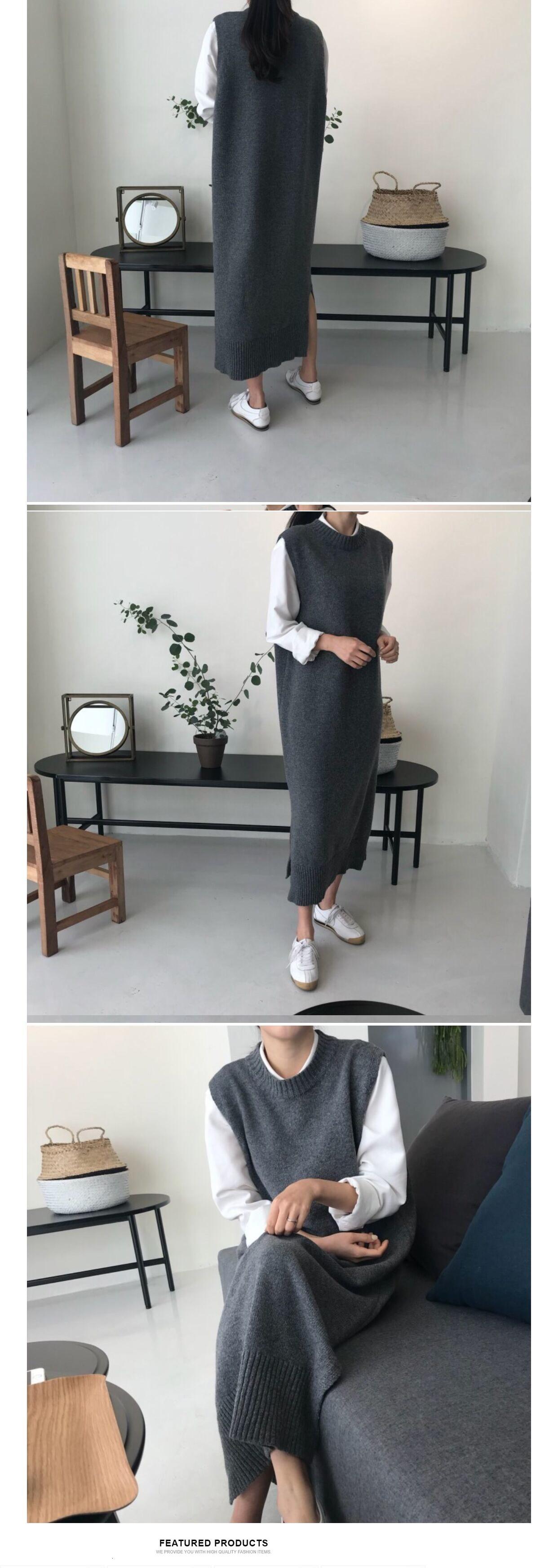 [EWQ] O ネックベストニットドレスルーズノースリーブセーター丈ドレス秋潮 Vestido オータム 秋物 Oネック