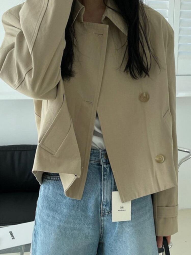 [EWQ] ラペルダブルブレストジャケット長袖ルーズジャケットコート秋冬潮 16U3724 ロング オータム 秋物 ウィンター 冬物