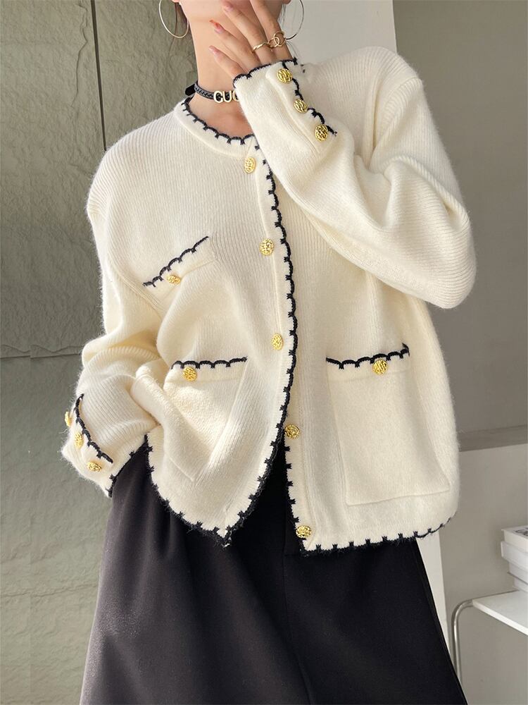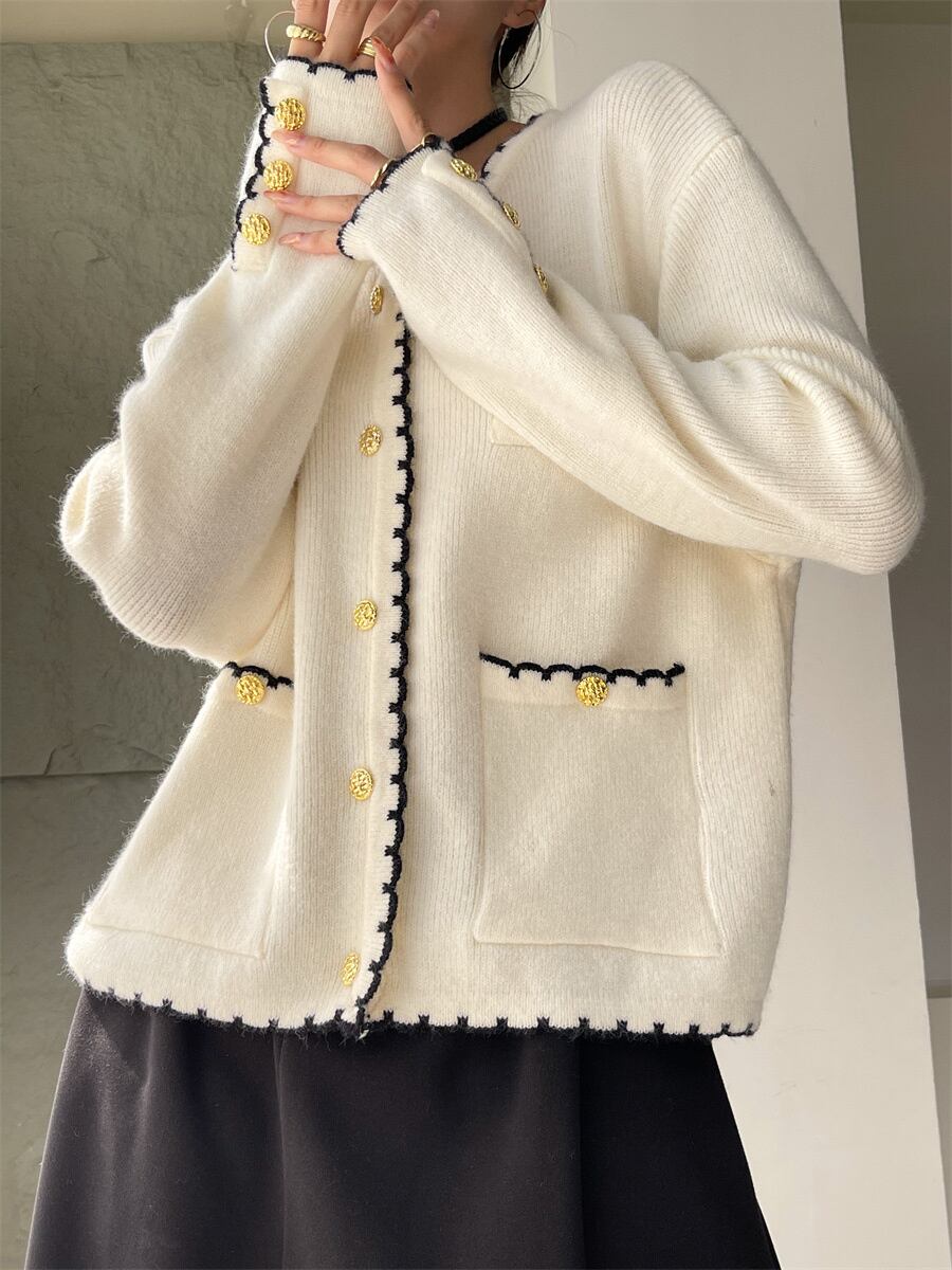 [EWQ] O ネックニットコートポケットシングルブレストオールマッチジャケット秋トレンド 16O157 オータム 秋物 Oネック