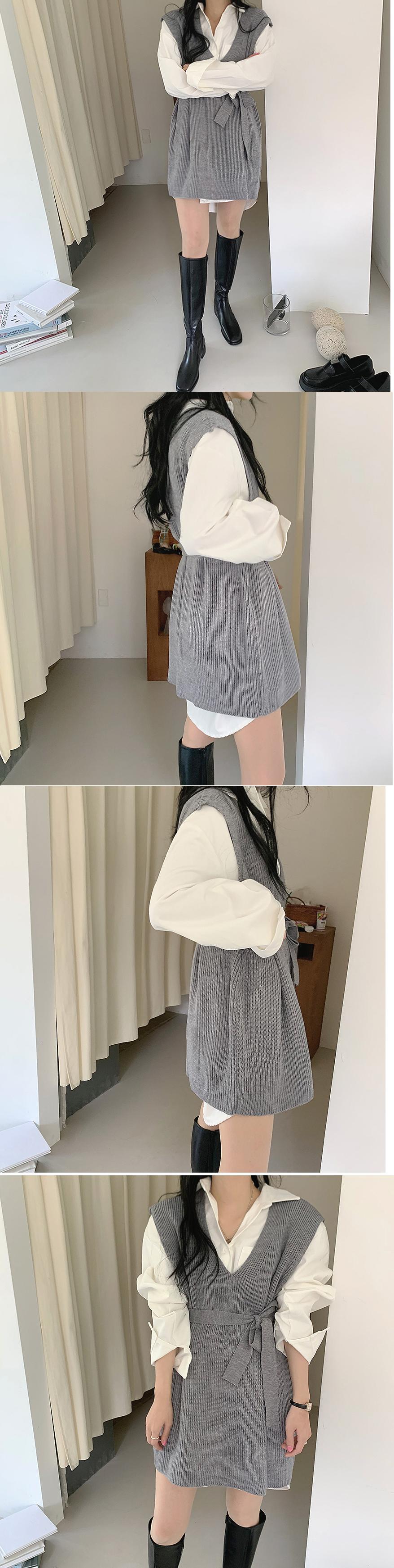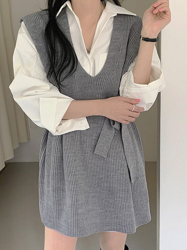 [EWQ] V ネックレースアップニットドレスルーズノースリーブショートドレス夏潮ニット Vestidos サマー 夏物 Vネック