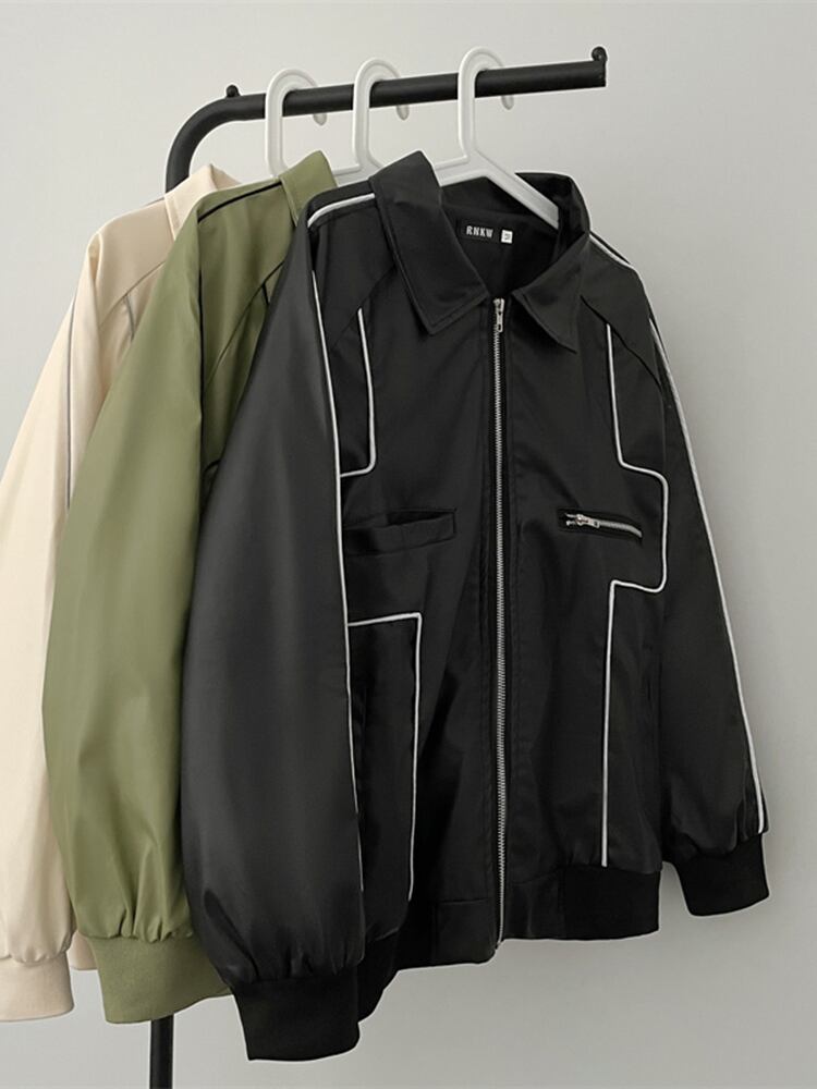 [EWQ] ビッグサイズジップアップ Pu レザージャケット長袖パッチワークルーズジャケットコート秋潮生き抜く ロング オータム 秋物
