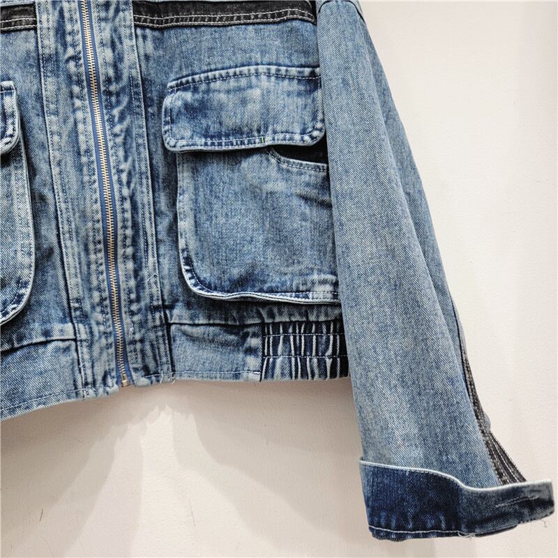 [EWQ] パッチワーク デニム ジャケット レディース 長袖 ルーズ ポケット スプライシング ジップアップ ジャケット 秋潮コート ロング オータム 秋物