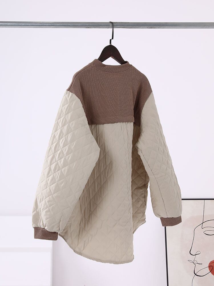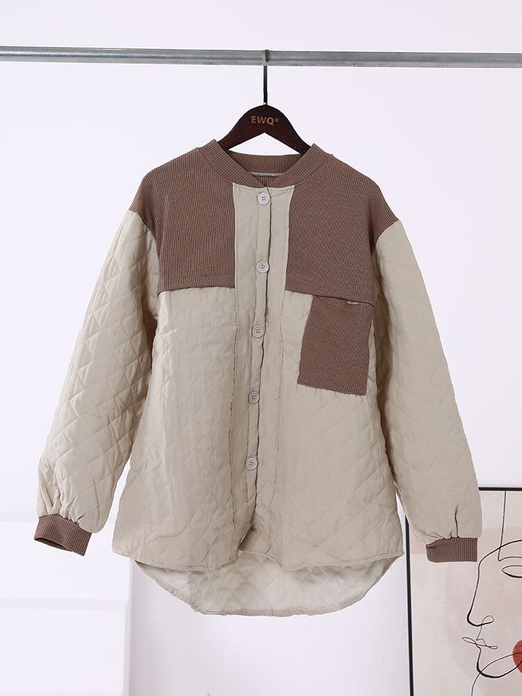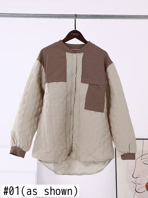 [EWQ] パッチワーク シャツジャケット 大きいサイズ レディース カラーコントラスト コットンジャケット 秋アウター 大きめサイズ オータム 秋物