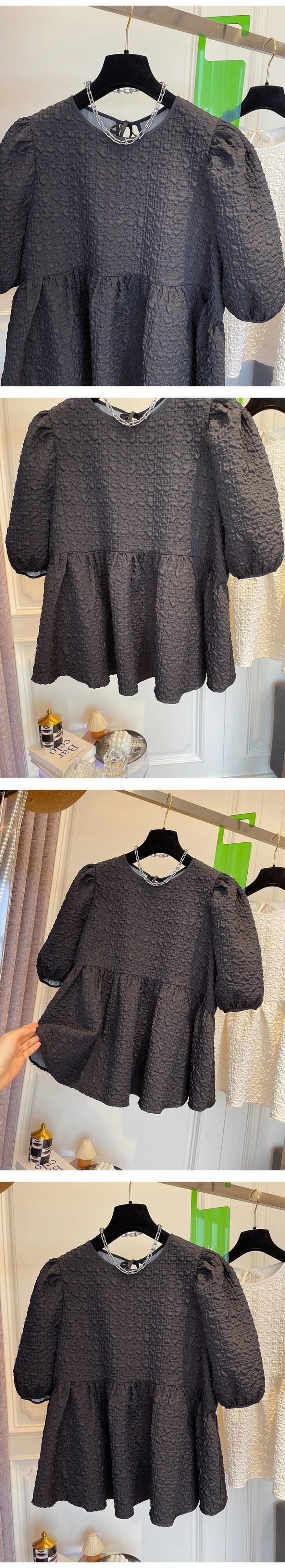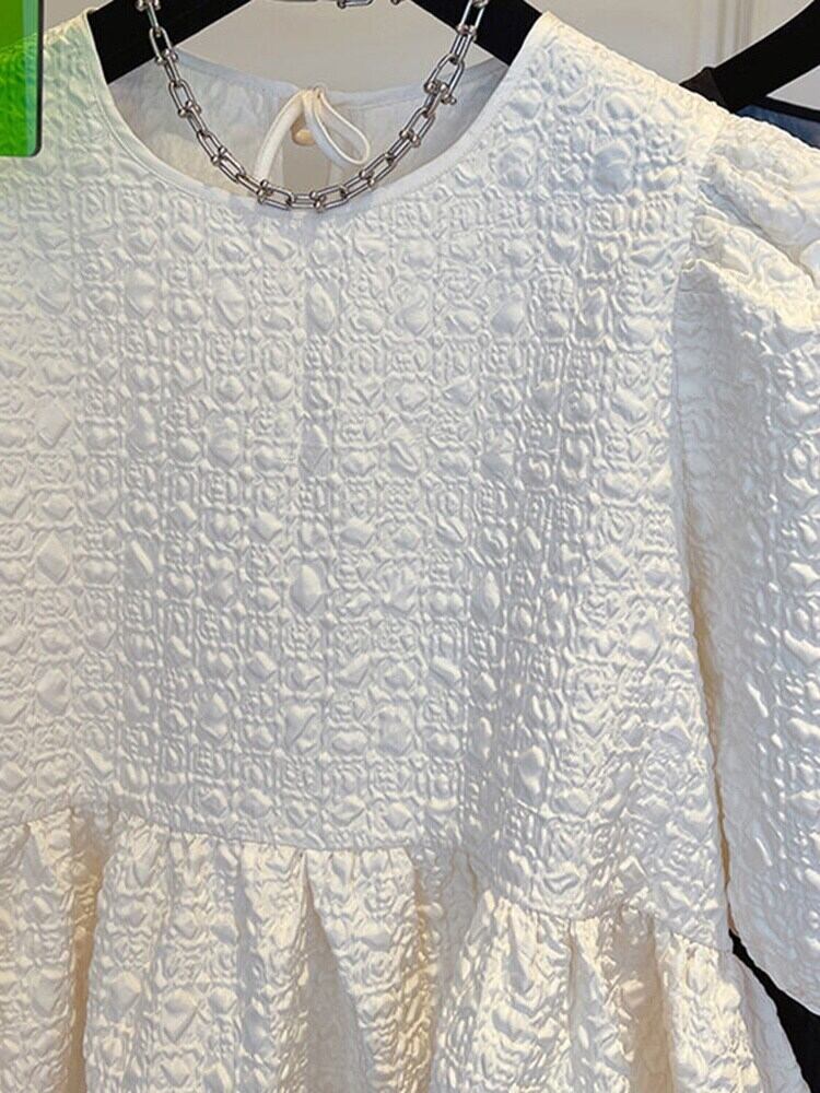 [EWQ]甘いフリルパフスリーブプリーツシャツOネックルーズブラウス秋オールマッチ ラッフル 大人ガーリー スウィート キュート カジュアル オータム 秋物