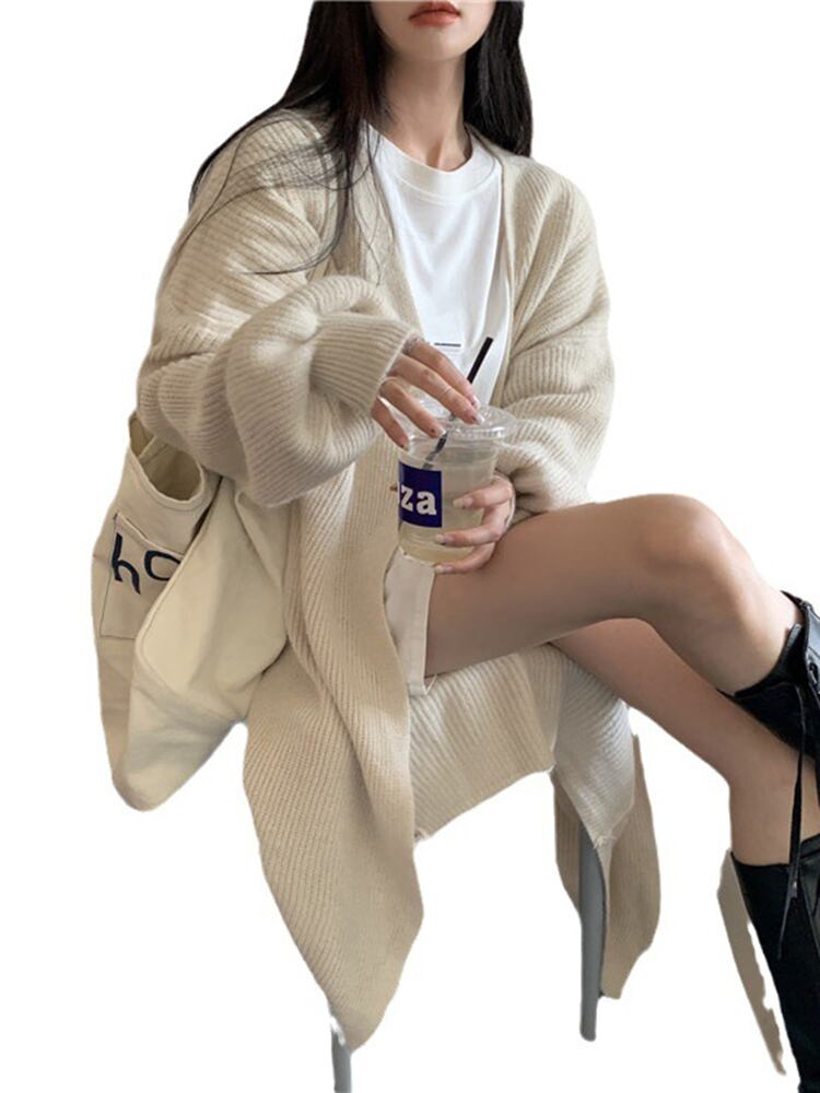 [EWQ] アプリコット丈カーディガンコートランタンスリーブ秋冬潮セータージャケットニットコート 3537 オータム 秋物 ウィンター 冬物