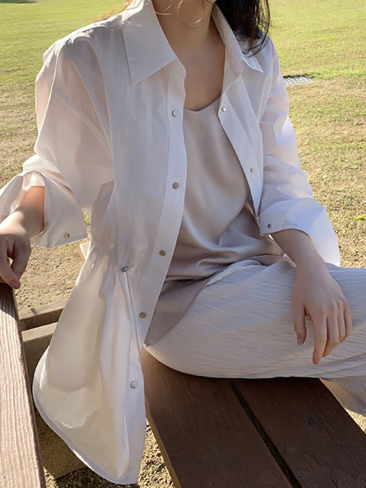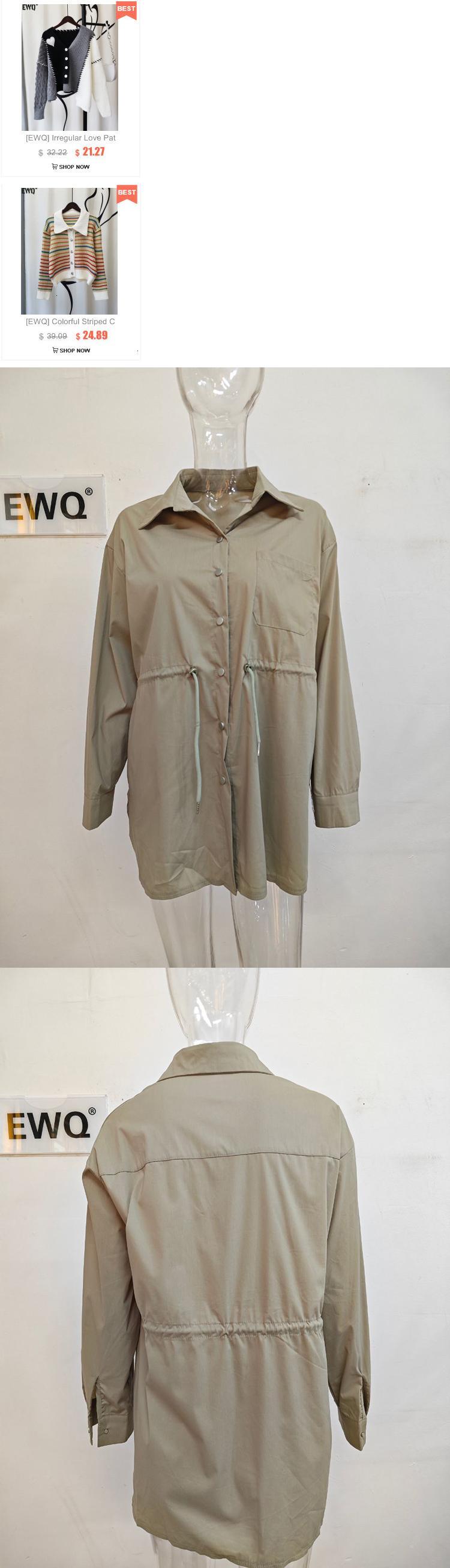 [EWQ] 巾着ウエスト薄型ジャケットランタンスリーブシングルブレストルーズジャケットコート秋潮生き抜く 16U33 オータム 秋物