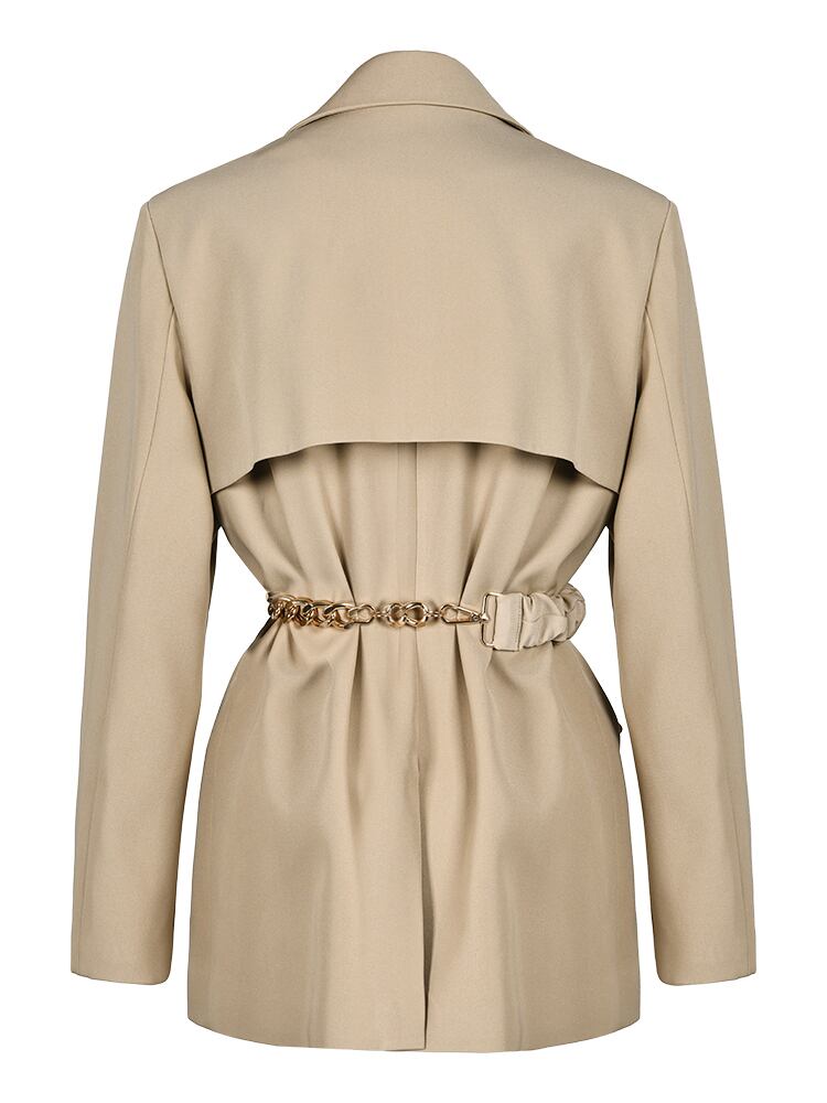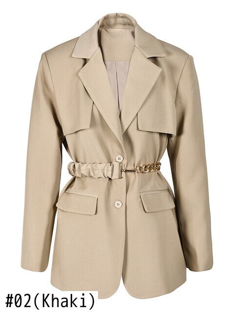 [EWQ] チェーン包帯バックルブレザーコート長袖 2 ボタンスーツジャケット秋冬潮ブレザー O228 ロング オータム 秋物 ウィンター 冬物