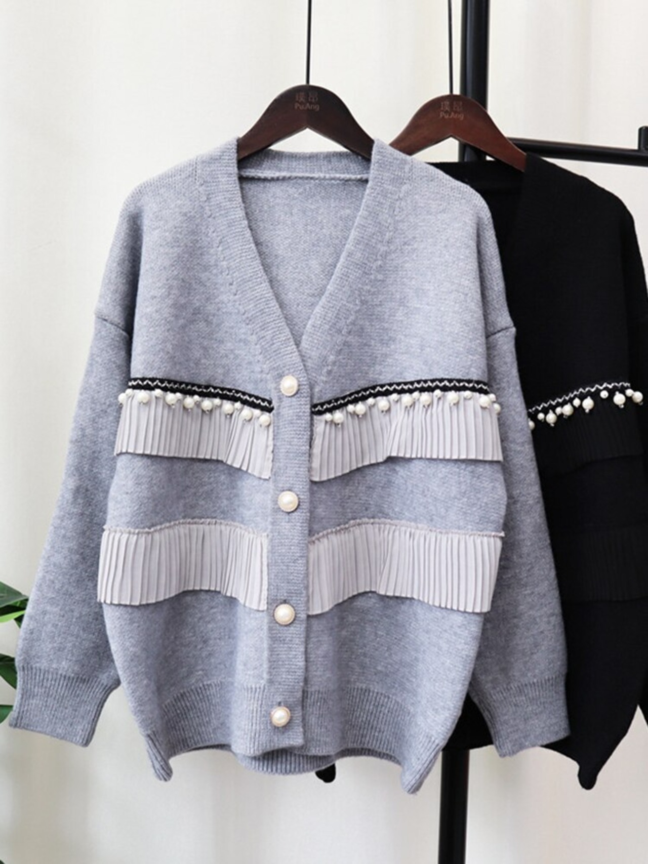 [EWQ] フリルスプライスカーディガンコート長袖シングルブレストコントラストセータージャケット秋冬服 ロング オータム 秋物 ウィンター 冬物