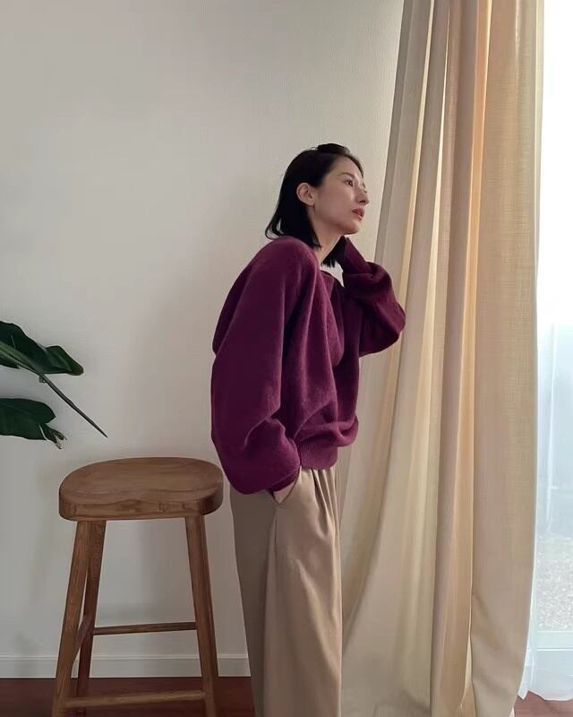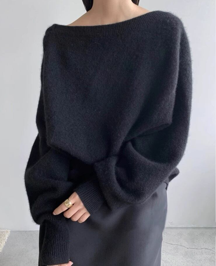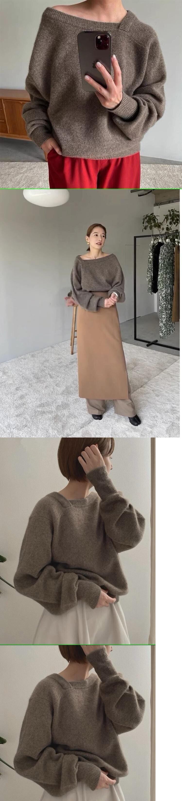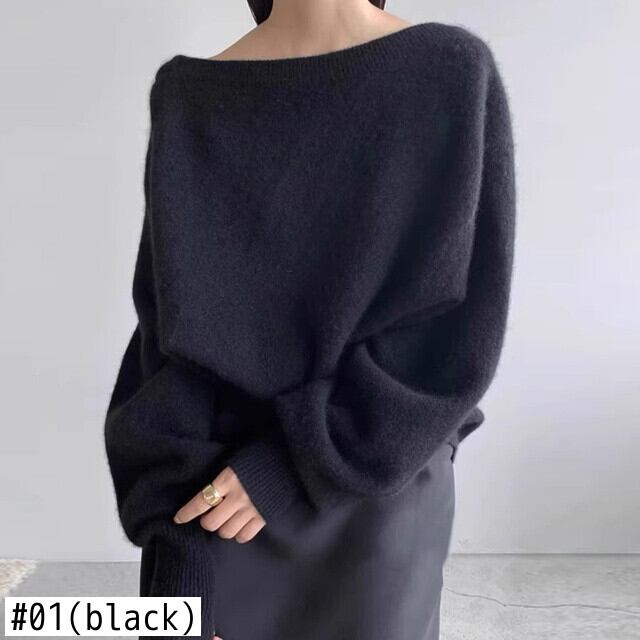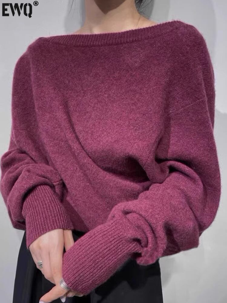 [EWQ] オフショルダールーズセーター長袖プルオーバーニットトップ秋潮ニットトップ 379 ロング オータム 秋物