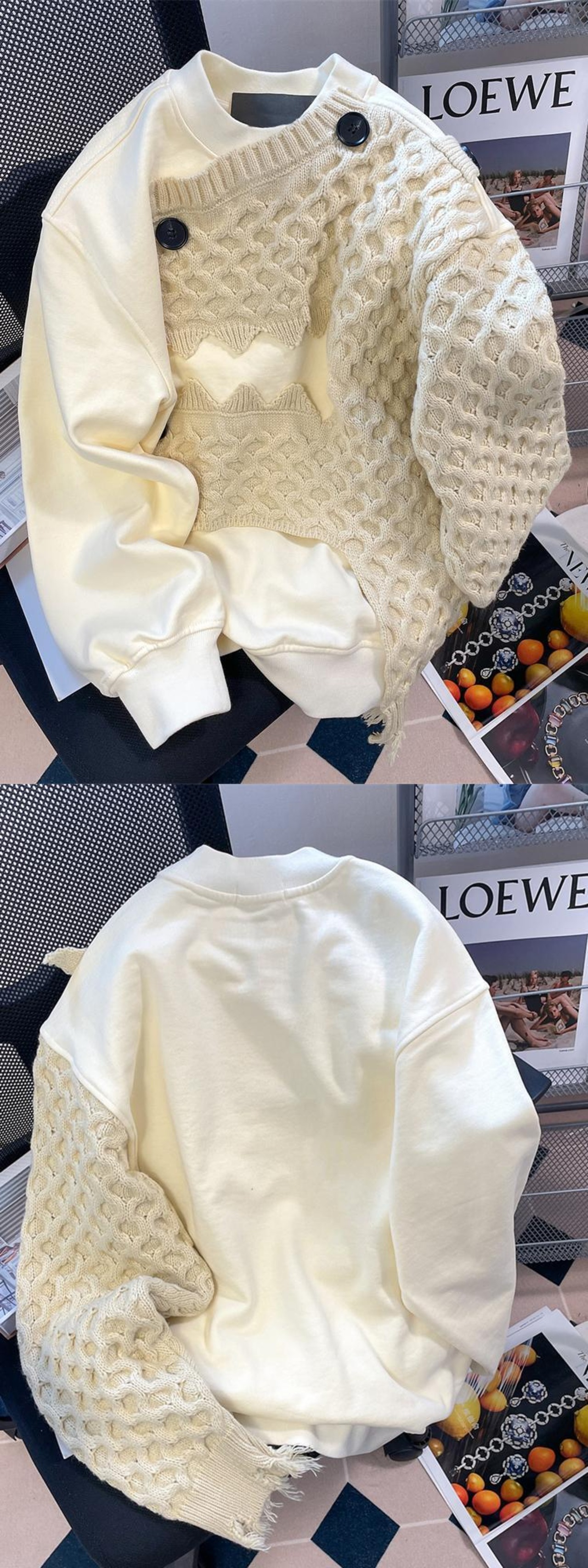 [EWQ] フェイクツーピース イレギュラーパッチワーク セーター プルオーバー レディース Oネック ニット トレーナー 秋 16O525 オータム 秋物