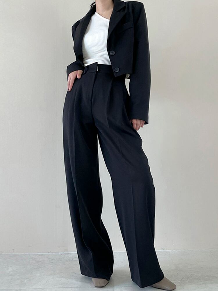 [EWQ] スーツ 2 点セット長袖ショートブレザー + ウエスト 1 ボタン パンツ秋潮服 ロング オータム 秋物