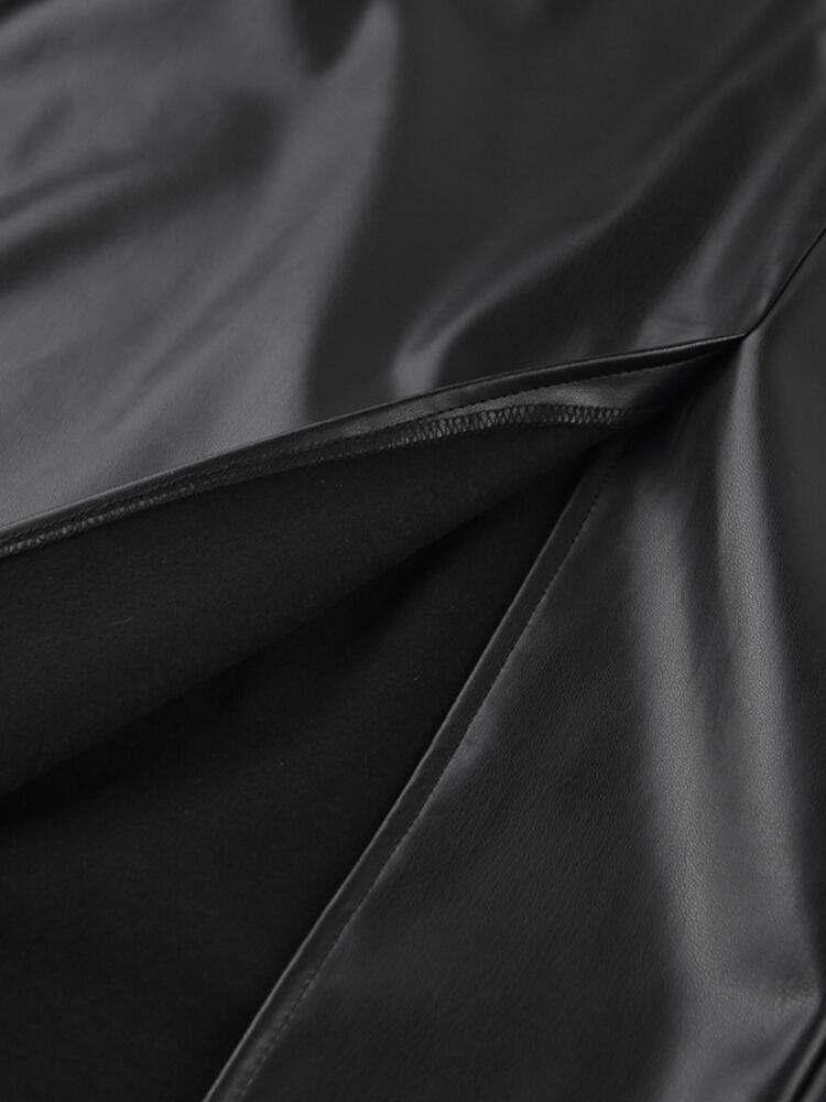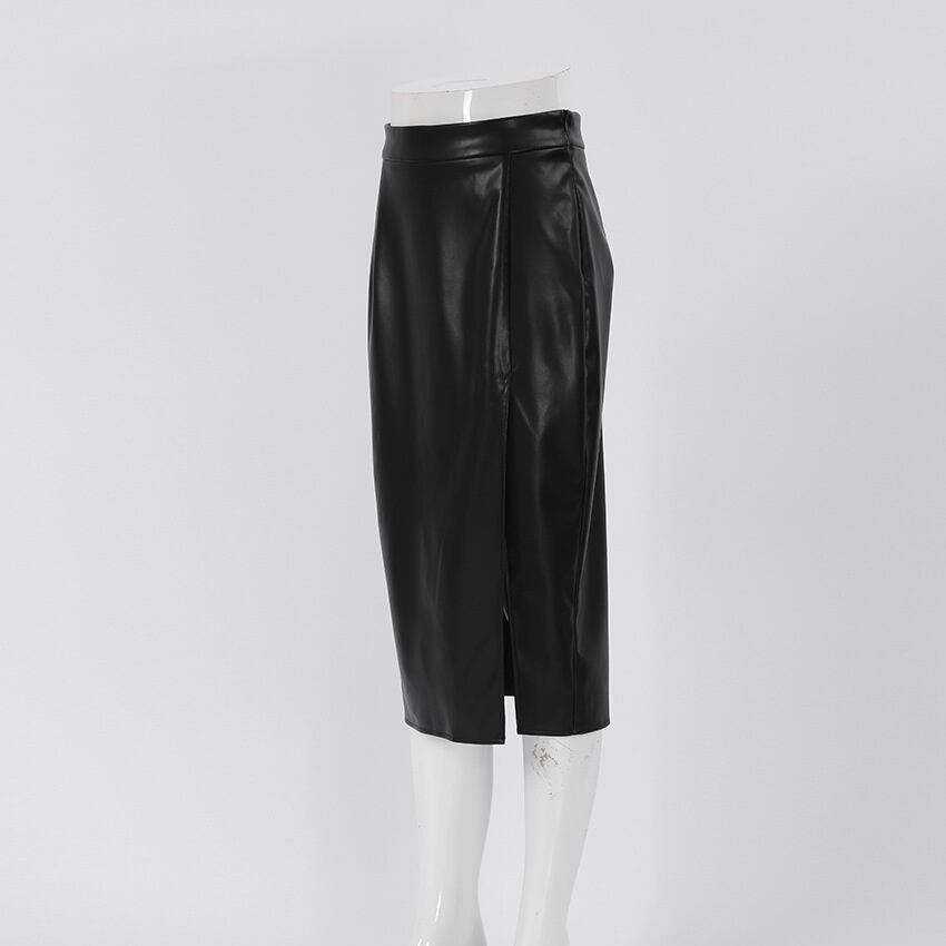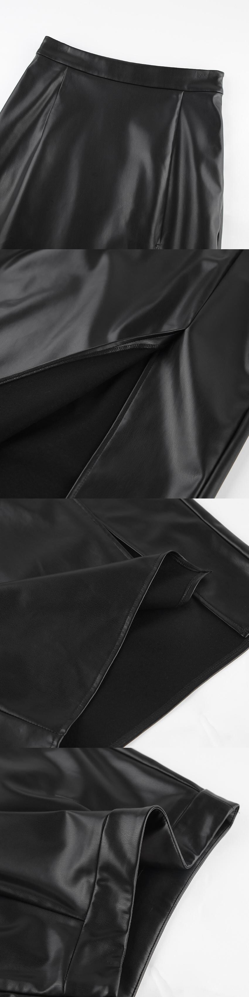 [EWQ] PU レザースカートウエストスリムスプリットミッドカーフスカート秋冬潮オールマッチ服 オータム 秋物 ウィンター 冬物