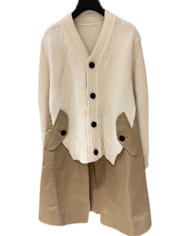 [EWQ] カーキパッチワークカーディガンコート長袖シングルブレストルーズセータージャケット秋冬 6U4439 ロング オータム 秋物 ウィンター 冬物