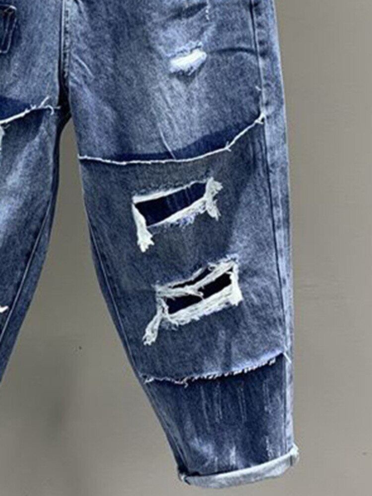 [EWQ] ストリートホールテルパッチワークデニムパンツレトロシックハーレムジーンズ秋ヨーロッパ流行服 オータム 秋物 ヨーロピアン