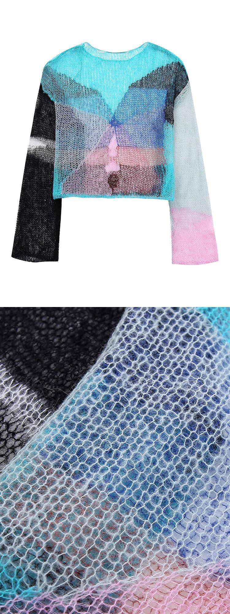 [EWQ] 薄い視点中空アウトセーターコントラストカラールーズプルオーバーニット秋冬 16U4276 オータム 秋物 ウィンター 冬物
