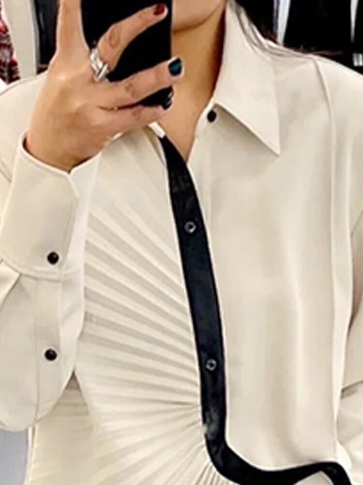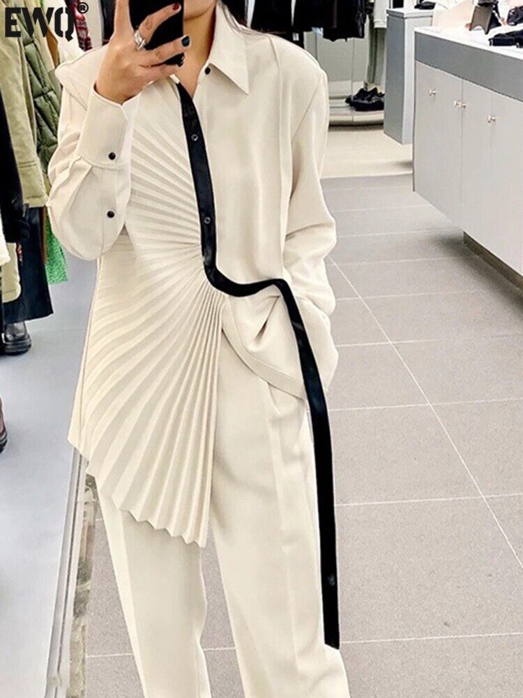 [EWQ]不規則プリーツブラウスラペル長袖ルーズシャツ春秋アプリコットトップス美しい服 ロング スプリング 春物 オータム 秋物